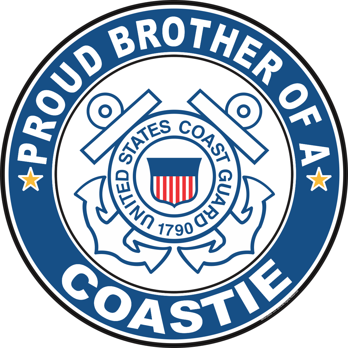 MilitaryBest is proud to offer this Proud Brother of a Coastie U.S. Coast Guard Round Decal. This U.S. Coast Guard Decal is a great way to show your family pride. All MilitaryBest Coast Guard stickers are printed using high-quality vinyl and U.V. resistant ink. Each is then cured, laminated and die cut for a beautiful crisp, clean and professional look. This Proud Brother of a Coastie U.S. Coast Guard Round Decal, as well as, any other MilitaryBest.com decal is proudly Made in the USA at our facilities in Scottsboro, AL. Select desired quantity and size from the menu above.Features: