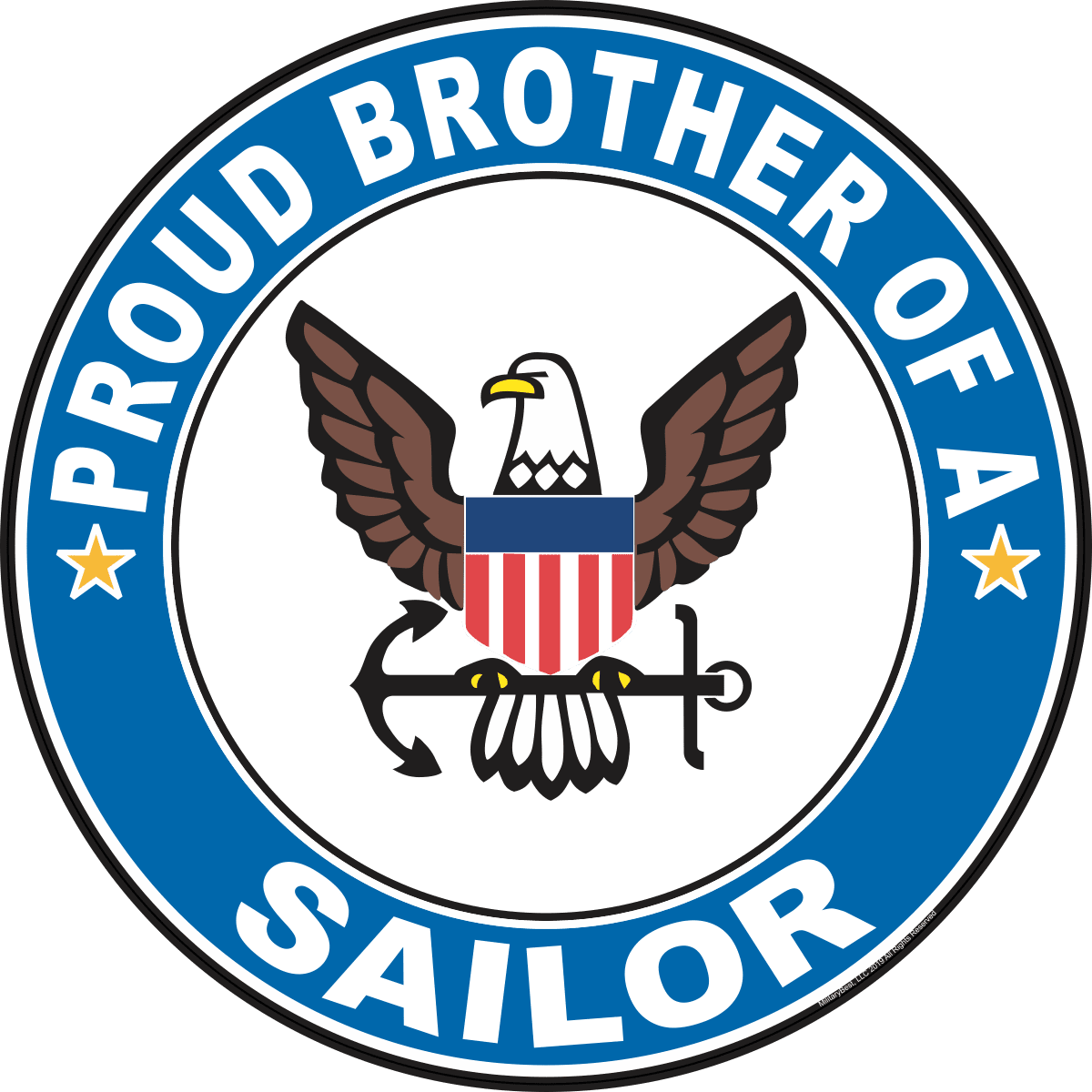 MilitaryBest is proud to offer this Proud Brother of a Sailor U.S. Navy Round Decal. This U.S. Navy Decal is a great way to show your family pride. All MilitaryBest Navy stickers are printed using high-quality vinyl and U.V. resistant ink. Each is then cured, laminated and die cut for a beautiful crisp, clean and professional look. This Proud Brother of a Sailor U.S. Navy Round Decal, as well as, any other MilitaryBest.com decal is proudly Made in the USA at our facilities in Scottsboro, AL. Select desired quantity and size from the menu above.Features: