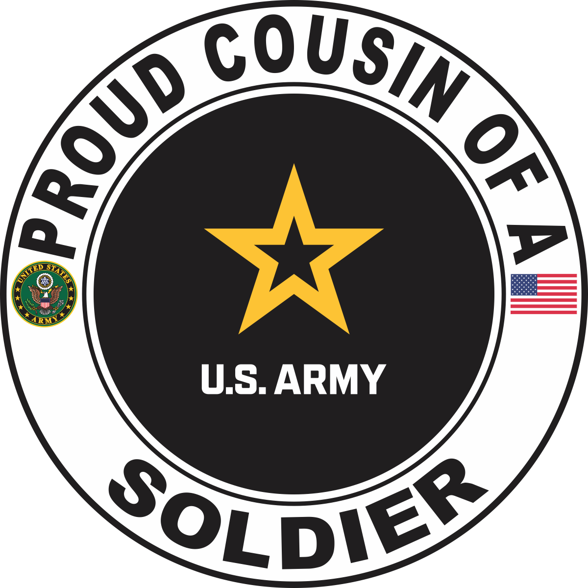 MilitaryBest is proud to offer this Proud Cousin of a Soldier U.S. Army Round Decal. This U.S. Army Decal is a great way to show your family pride. All MilitaryBest Army stickers are printed using high-quality vinyl and U.V. resistant ink. Each is then cured, laminated and die cut for a beautiful crisp, clean and professional look. This Proud Cousin of a Soldier U.S. Army Round Decal, as well as, any other MilitaryBest.com decal is proudly Made in the USA at our facilities in Scottsboro, AL. Select desired quantity and size from the menu above.Features: