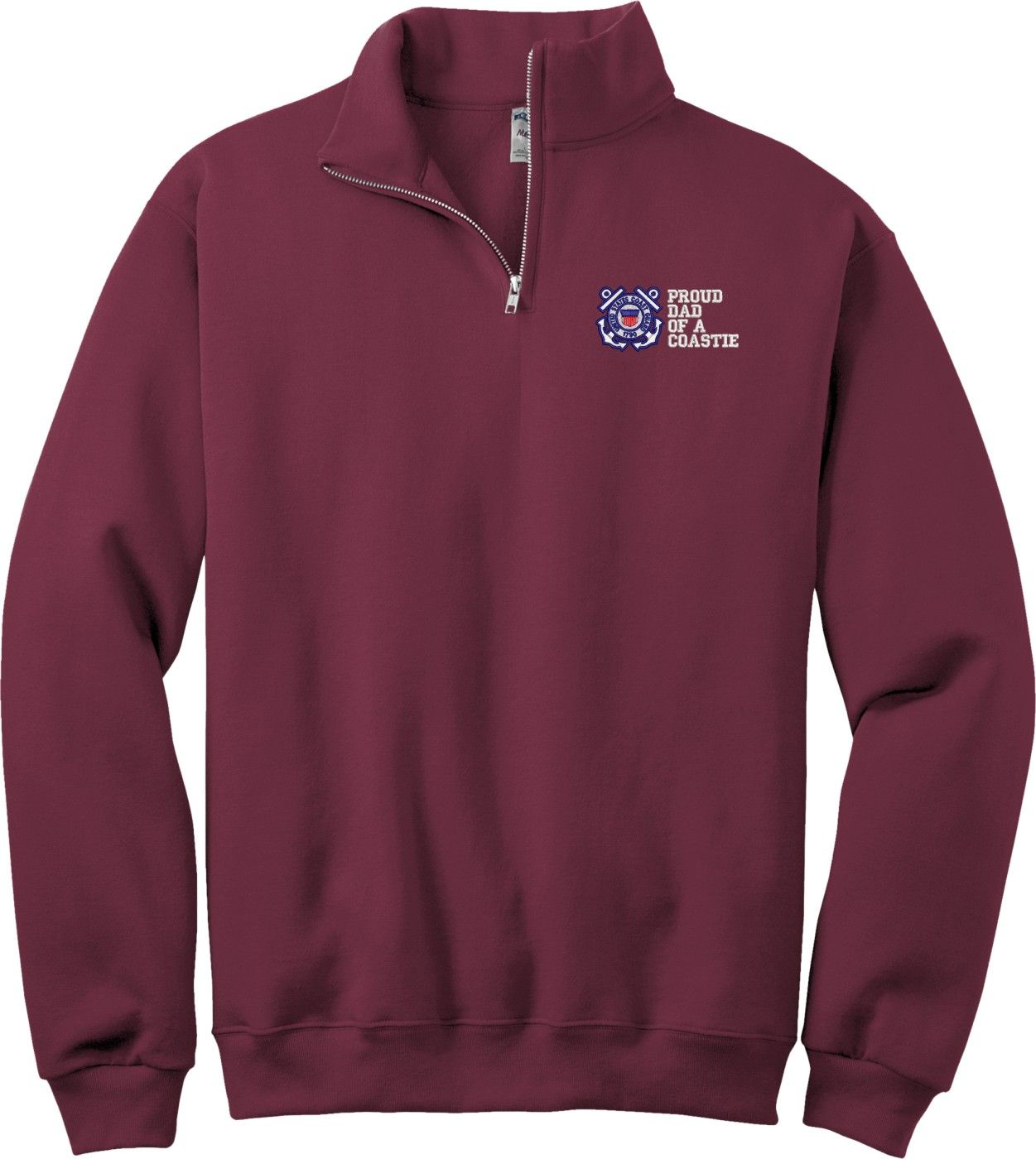 MilitaryBest is proud to offer this Proud Dad of a Coastie U.S. Coast Guard Embroidered Quarter-Zip Pullover. This quality shirt is embroidered by our MilitaryBest team in Northeast Alabama.PRODUCT FEATURES
