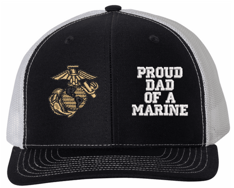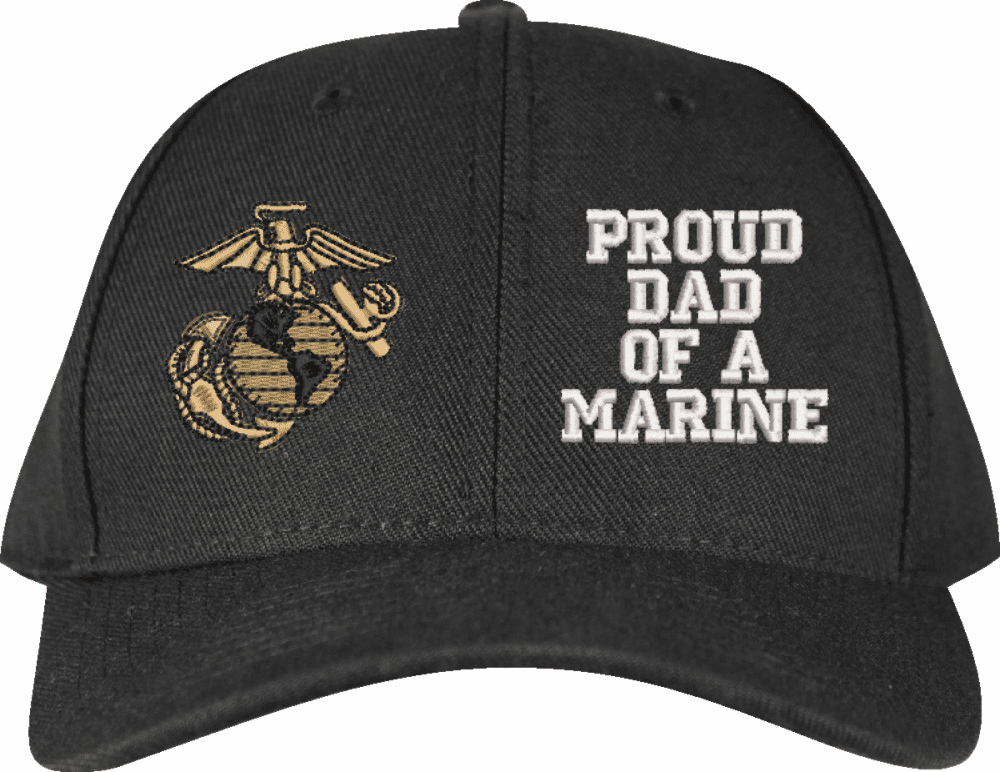 MilitaryBest is proud to offer this Proud Dad of a Marine U.S. Marine Corps Made in the USA Cap. The design of this U.S. Marine Corps Cap is crisp, clean, and sure to be loved by people of all ages! Select above from our many cap colors. This Proud Dad of a Marine U.S. Marine Corps Made in the USA Cap is crafted by our skilled embroidery technicians at our facilities in Scottsboro, AL. As with all MilitaryBest items, your satisfaction is guaranteed!Caps ordered with custom embroidered personalized back text require an additional 2 to 3 days production time. All custom back text will be embroidered in ALL CAPITAL LETTERS. Caps personalized with back text are non-returnable unless there is a material defect in the cap.