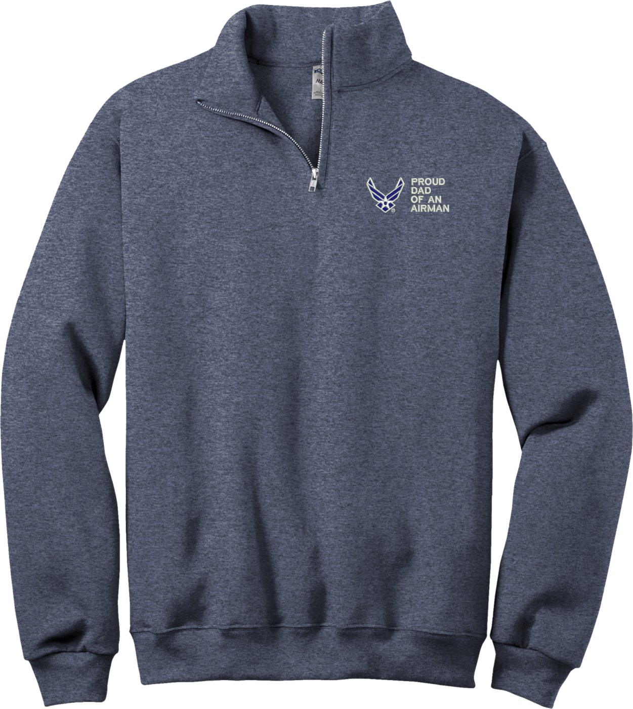 MilitaryBest is proud to offer this Proud Dad of an Airman U.S. Air Force Embroidered Quarter-Zip Pullover. This quality shirt is embroidered by our MilitaryBest team in Northeast Alabama.PRODUCT FEATURES