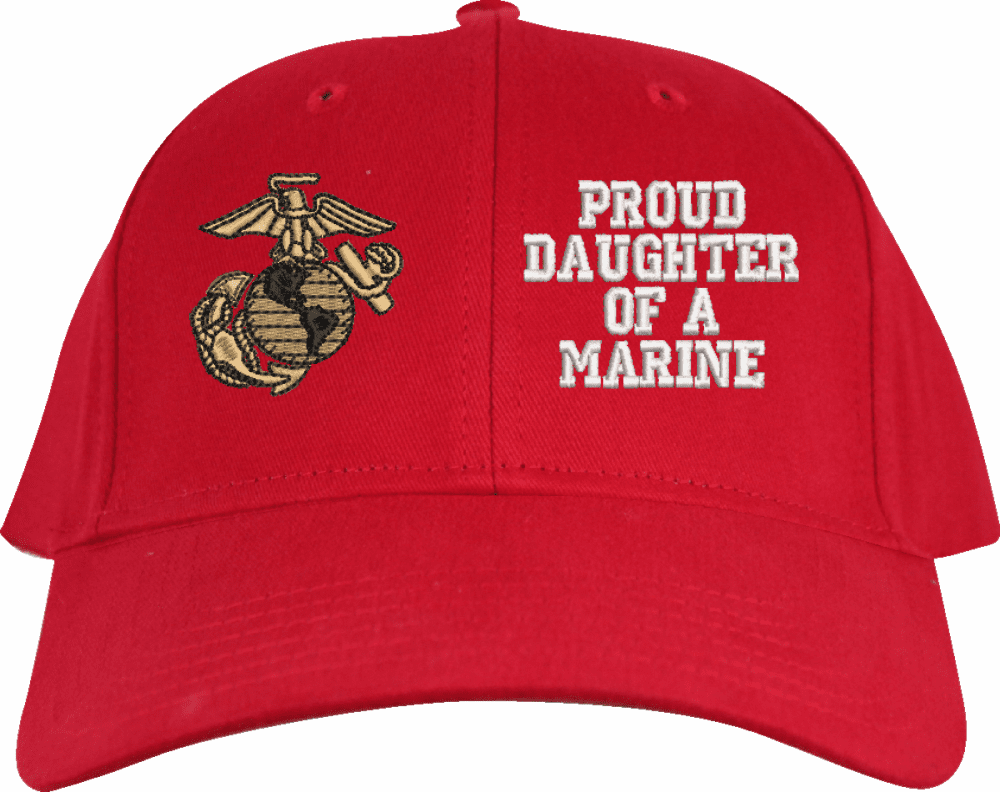 MilitaryBest is proud to offer this Proud Daughter of a Marine U.S. Marine Corps Made in the USA Cap. The design of this U.S. Marine Corps Cap is crisp, clean, and sure to be loved by people of all ages! Select above from our many cap colors. This Proud Daughter of a Marine U.S. Marine Corps Made in the USA Cap is crafted by our skilled embroidery technicians at our facilities in Scottsboro, AL. As with all MilitaryBest items, your satisfaction is guaranteed!Caps ordered with custom embroidered personalized back text require an additional 2 to 3 days production time. All custom back text will be embroidered in ALL CAPITAL LETTERS. Caps personalized with back text are non-returnable unless there is a material defect in the cap.