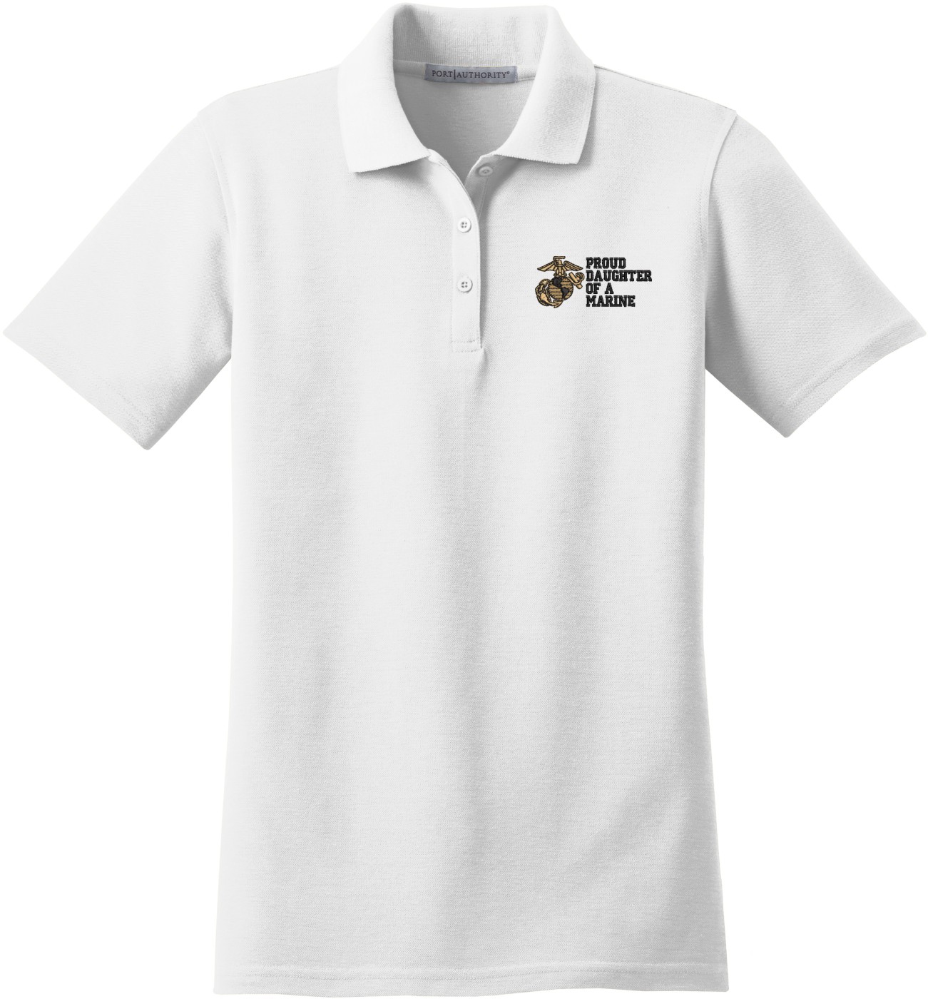 MilitaryBest is proud to offer this Proud Daughter of a Marine U.S. Marine Corps Women's Stain-Release Polo. This polo is embroidered by our MilitaryBest team in Northeast Alabama. These polos are made with a stain-release finish for long-lasting wear, odor-fighting properties, and superior wrinkle and shrink resistance.Care Instructions: Machine Wash Cold With Like Colors. Do Not Use Fabric Softener. Do Not Bleach. Tumble Dry Low. Warm Iron If Necessary.