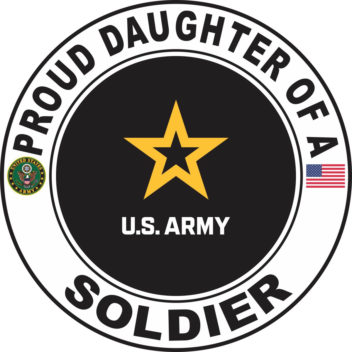 MilitaryBest is proud to offer this Proud Daughter of a Soldier U.S. Army Round Decal. This U.S. Army Decal is a great way to show your family pride. All MilitaryBest Army stickers are printed using high-quality vinyl and U.V. resistant ink. Each is then cured, laminated and die cut for a beautiful crisp, clean and professional look. This Proud Daughter of a Soldier U.S. Army Round Decal, as well as, any other MilitaryBest.com decal is proudly Made in the USA at our facilities in Scottsboro, AL. Select desired quantity and size from the menu above.Features: