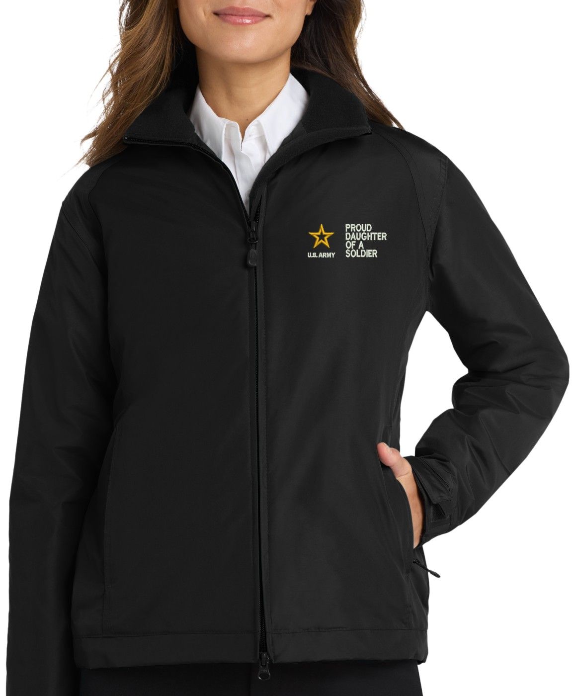 MilitaryBest is proud to offer this Proud Daughter of a Soldier U.S. Army Women's 3-Season Jacket. This jacket is embroidered by our MilitaryBest team in Northeast Alabama. These jackets are water- and wind-resistant.Product Features