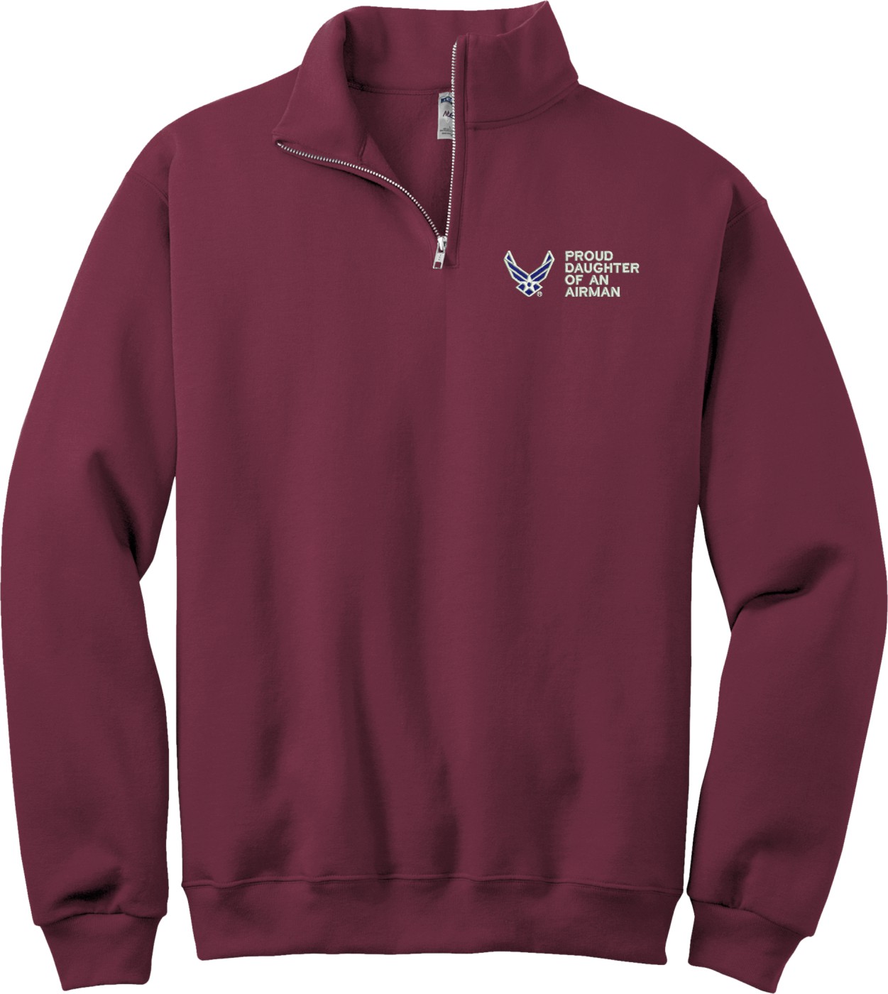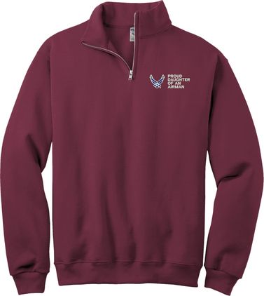 MilitaryBest is proud to offer this Proud Daughter of an Airman U.S. Air Force Embroidered Quarter-Zip Pullover. This quality shirt is embroidered by our MilitaryBest team in Northeast Alabama.PRODUCT FEATURES
