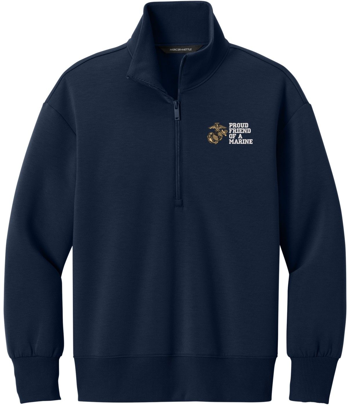 MilitaryBest is proud to offer this Proud Friend of a Marine U.S. Marine Corps Women's Soft Spacer Quarter-Zip. This quarter-zip is embroidered by our MilitaryBest team in Northeast Alabama. These quarter-zips are made using spacer yarn to provide light insulation with a soft structure, they also fight odor and provide light UV ray protection.Care Instructions: Turn Garment Inside Out. Machine Wash Cold With Like Colors. Only Non-Chlorine Bleach, When Needed. Tumble Dry Low, Remove Promptly. Cool Iron, If Necessary. Do Not Use Fabric Softeners Or Dryer Sheets.