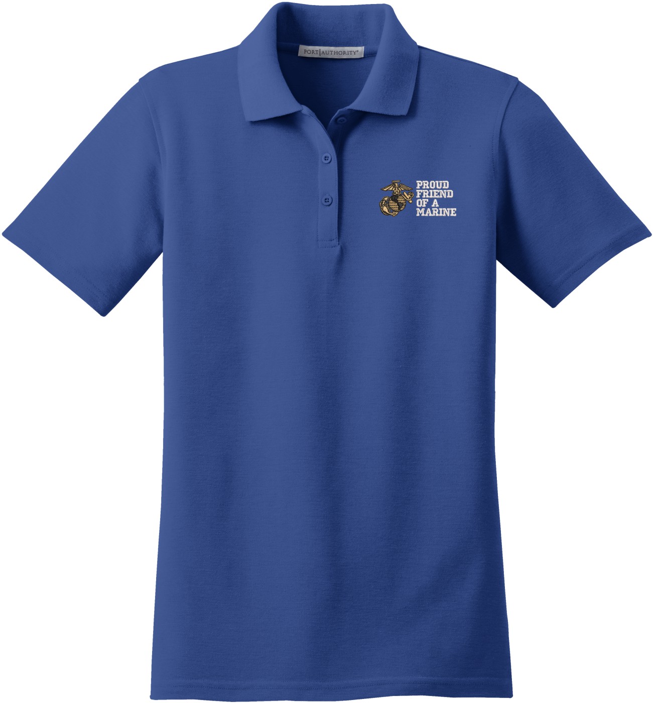 MilitaryBest is proud to offer this Proud Friend of a Marine U.S. Marine Corps Women's Stain-Release Polo. This polo is embroidered by our MilitaryBest team in Northeast Alabama. These polos are made with a stain-release finish for long-lasting wear, odor-fighting properties, and superior wrinkle and shrink resistance.Care Instructions: Machine Wash Cold With Like Colors. Do Not Use Fabric Softener. Do Not Bleach. Tumble Dry Low. Warm Iron If Necessary.