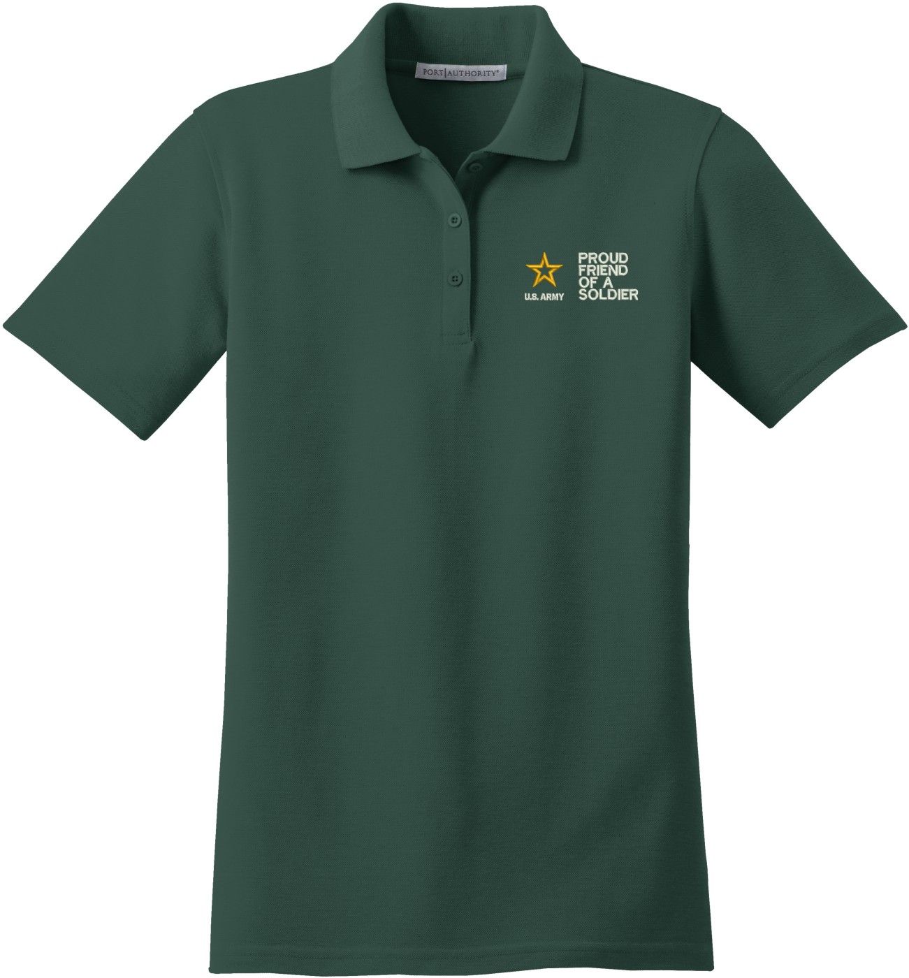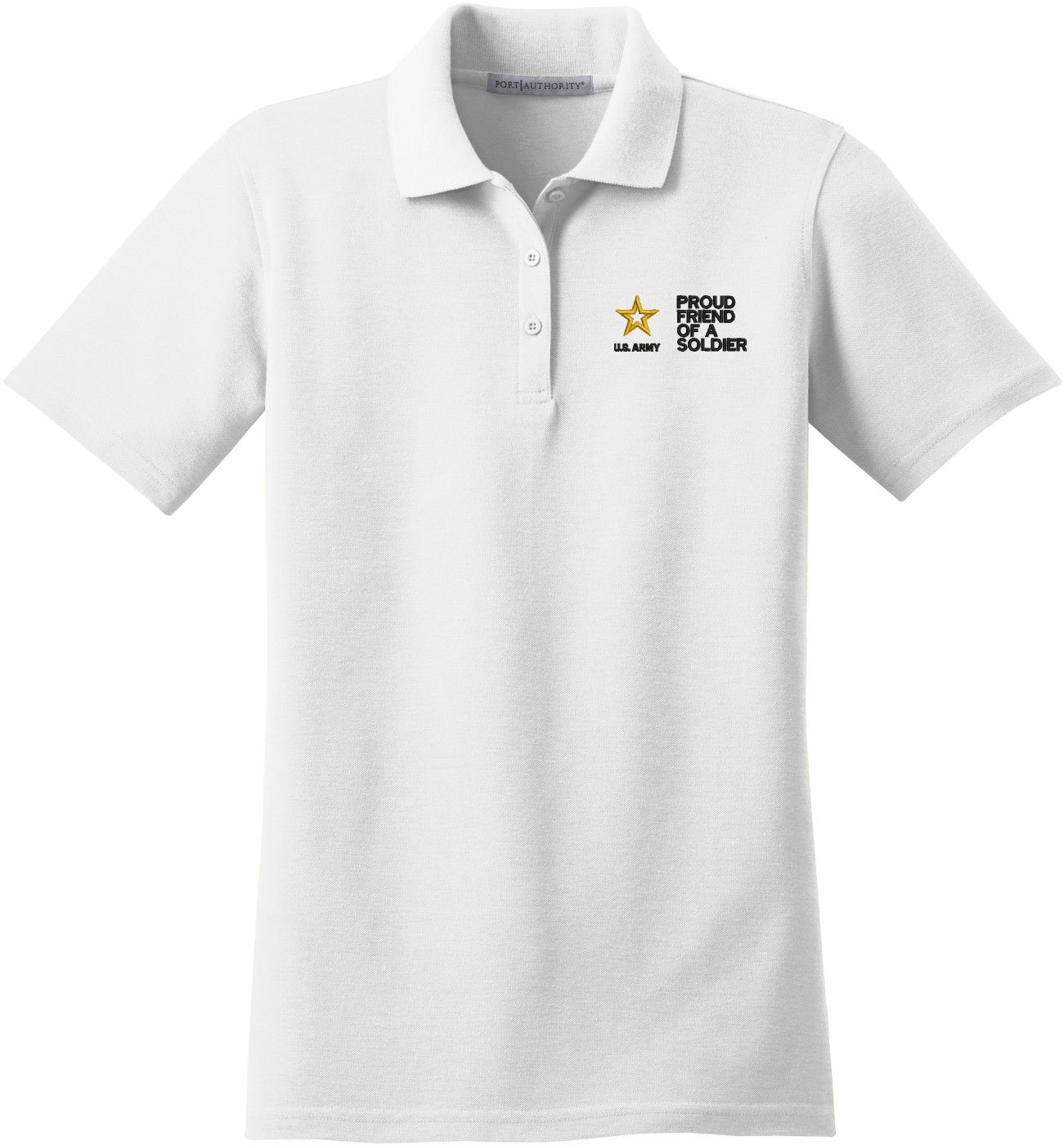 MilitaryBest is proud to offer this Proud Friend of a Soldier U.S. Army Women's Stain-Release Polo. This polo is embroidered by our MilitaryBest team in Northeast Alabama. These polos are made with a stain-release finish for long-lasting wear, odor-fighting properties, and superior wrinkle and shrink resistance.Care Instructions: Machine Wash Cold With Like Colors. Do Not Use Fabric Softener. Do Not Bleach. Tumble Dry Low. Warm Iron If Necessary.