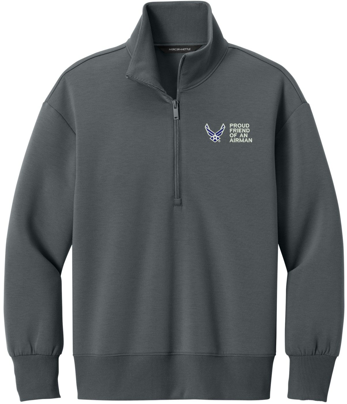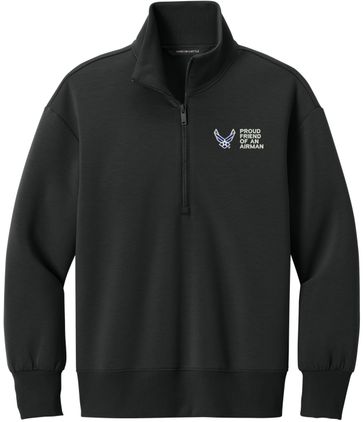 MilitaryBest is proud to offer this Proud Friend of an Airman U.S. Air Force Women's Soft Spacer Quarter-Zip. This quarter-zip is embroidered by our MilitaryBest team in Northeast Alabama. These quarter-zips are made using spacer yarn to provide light insulation with a soft structure, they also fight odor and provide light UV ray protection.Care Instructions: Turn Garment Inside Out. Machine Wash Cold With Like Colors. Only Non-Chlorine Bleach, When Needed. Tumble Dry Low, Remove Promptly. Cool Iron, If Necessary. Do Not Use Fabric Softeners Or Dryer Sheets.