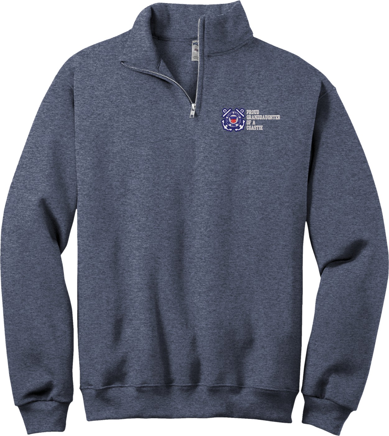 MilitaryBest is proud to offer this Proud Grandaughter of a Coastie U.S. Coast Guard Embroidered Quarter-Zip Pullover. This quality shirt is embroidered by our MilitaryBest team in Northeast Alabama.PRODUCT FEATURES