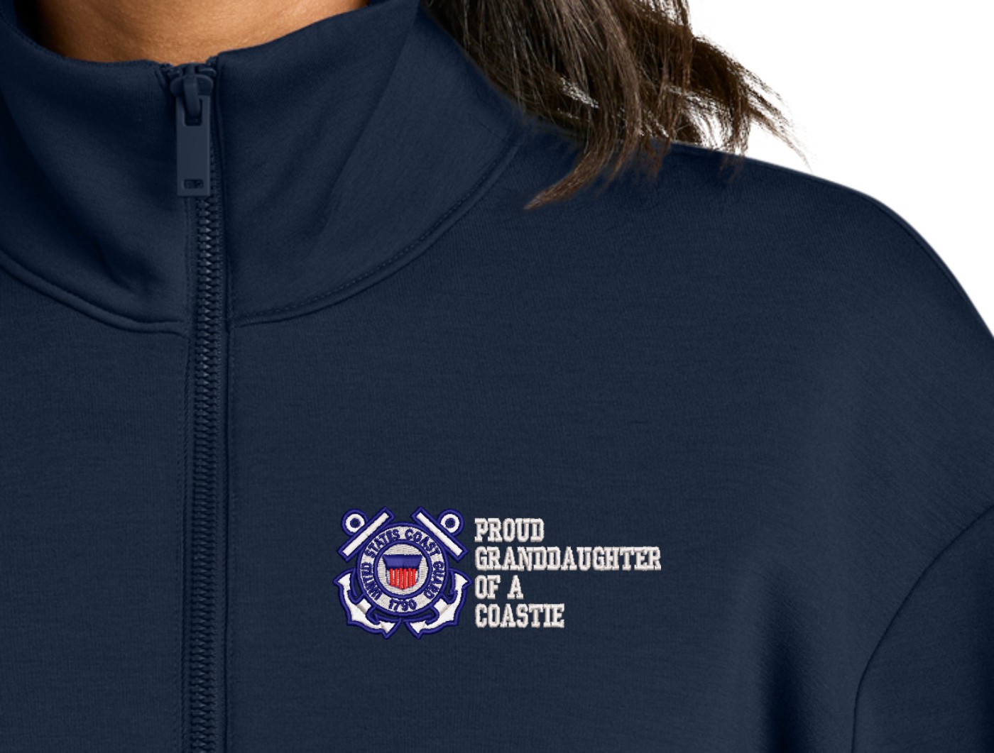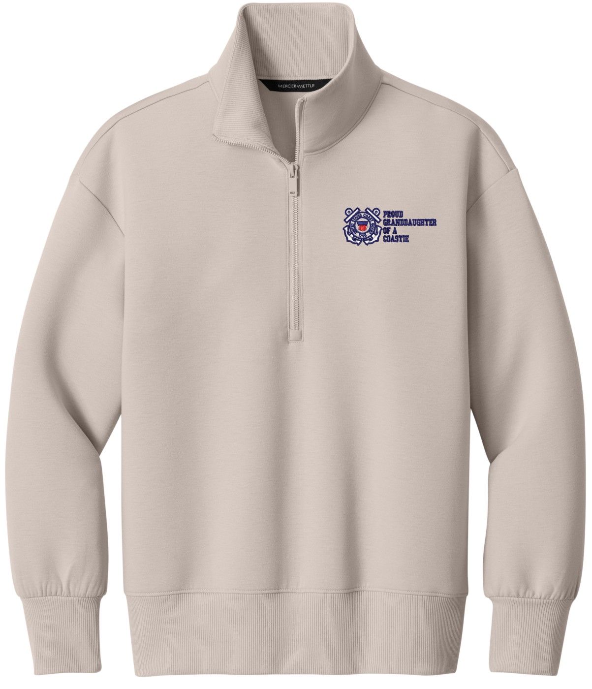MilitaryBest is proud to offer this Proud Grandaughter of a Coastie U.S. Coast Guard Women's Soft Spacer Quarter-Zip. This quarter-zip is embroidered by our MilitaryBest team in Northeast Alabama. These quarter-zips are made using spacer yarn to provide light insulation with a soft structure, they also fight odor and provide light UV ray protection.Care Instructions: Turn Garment Inside Out. Machine Wash Cold With Like Colors. Only Non-Chlorine Bleach, When Needed. Tumble Dry Low, Remove Promptly. Cool Iron, If Necessary. Do Not Use Fabric Softeners Or Dryer Sheets.
