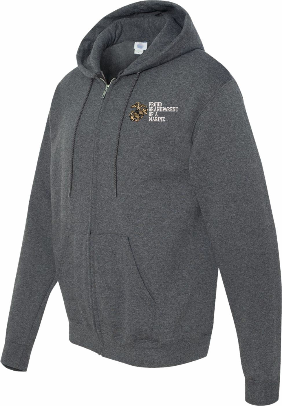 This Proud Grandparent of a Marine Charcoal Full-Zip Hoodie Large is an overstock item and is only available for the value price while supplies last. Clearance Items are not eligible for Refunds or Returns,A percentage of the sale of each MilitaryBest item is forwarded to the licensing departments of each respective branch of service in support of the MWR (Morale, Welfare, & Recreation) program. These payments are made by either ALL4U LLC or the wholesaler from where the item originated. Our team thanks you for your service and your support of these programs.