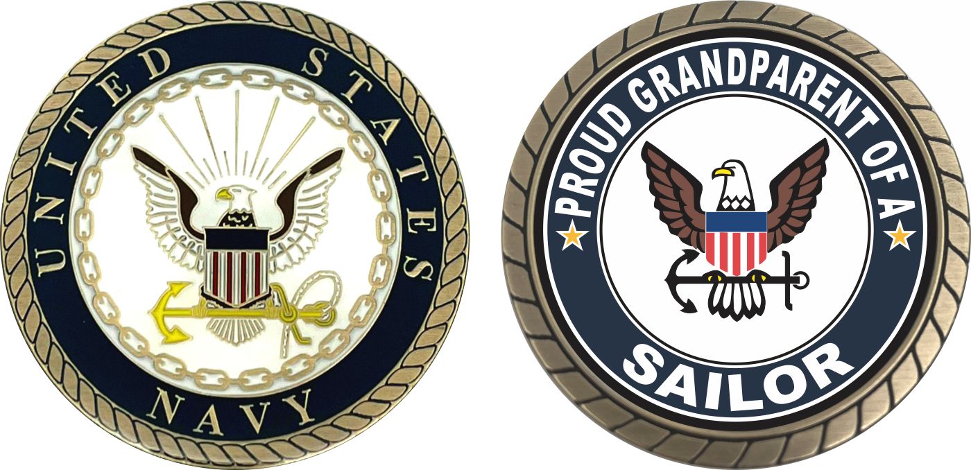 This 1 3/4” Proud Grandparent of a Sailor U.S. Navy Challenge Coin is proudly offered by MilitaryBest. This Officially Licensed Navy coin has beautiful enamel finish on one side and an organized crisp clean Proud Grandparent of a Sailor U.S. Navy design on the opposite side.