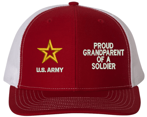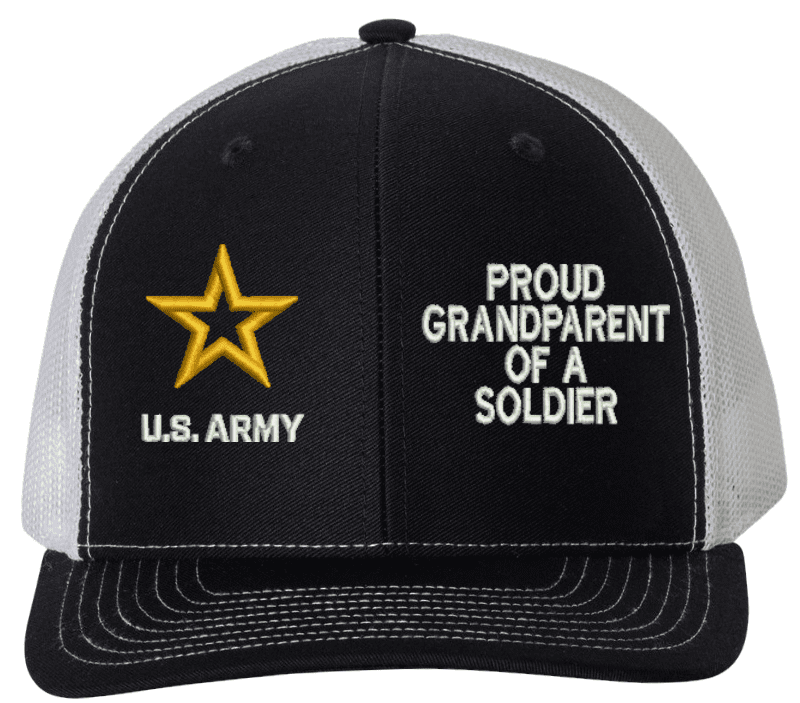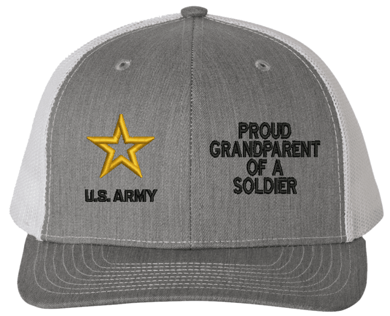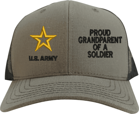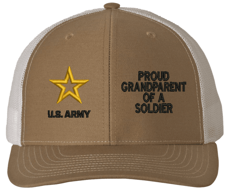 MilitaryBest is proud to offer this Proud GrandParent of a Soldier U.S. Army Mesh Back Cap. The design of this U.S. Army Cap is crisp, clean, and sure to be loved by people of all ages! Select above from our many cap colors. This Proud GrandParent of a Soldier U.S. Army Mesh Back Cap is crafted by our skilled embroidery technicians at our facilities in Scottsboro, AL. As with all MilitaryBest items, your satisfaction is guaranteed!Caps ordered with custom embroidered personalized back text require an additional 2 to 3 days production time. All custom back text will be embroidered in ALL CAPITAL LETTERS. Caps personalized with back text are non-returnable unless there is a material defect in the cap.