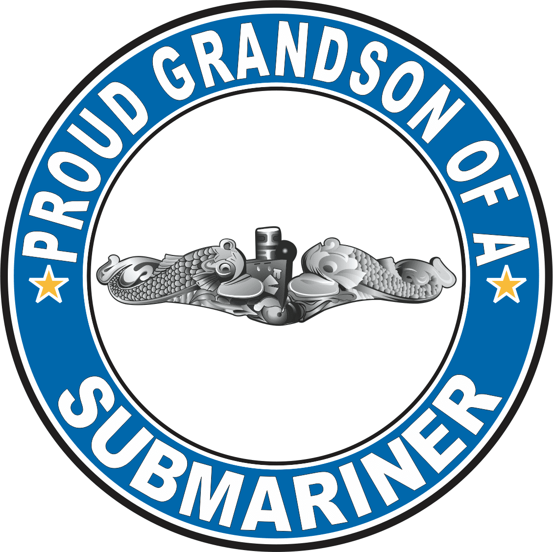 Proud Grandson of a Submariner Silver Dolphins Round DecalThis Proud Grandson of a Submariner Decal is Made in the USA at our facilities in Scottsboro, Alabama. Each Decal is made using the finest ink and vinyl available and all are made for outside applications. We have been producing high quality Military Decals for over 10 years and we guarantee the quality of each one. For bulk pricing for custom and wholesale decals click here: Custom & Wholesale Decals!