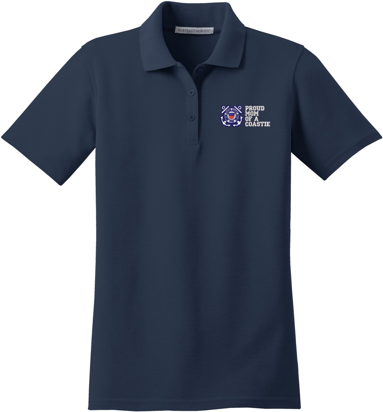 MilitaryBest is proud to offer this Proud Mom of a Coastie U.S. Coast Guard Women's Stain-Release Polo. This polo is embroidered by our MilitaryBest team in Northeast Alabama. These polos are made with a stain-release finish for long-lasting wear, odor-fighting properties, and superior wrinkle and shrink resistance.Care Instructions: Machine Wash Cold With Like Colors. Do Not Use Fabric Softener. Do Not Bleach. Tumble Dry Low. Warm Iron If Necessary.