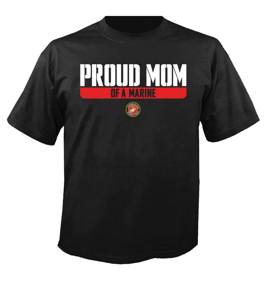 Please enjoy this U.S. Marine Corps officially licensed Proud Mom of A Marine T-Shirt. It is a 100% cotton shirt and is available in S, M, L, XL, 2X, 3X and 4X sizes.A percentage of the sale of each MilitaryBest item is forwarded to the licensing departments of each respective branch of service in support of the MWR (Morale, Welfare, & Recreation) program. These payments are made by either ALL4U LLC or the wholesaler from where the item originated. Our team thanks you for your service and your support of these programs.