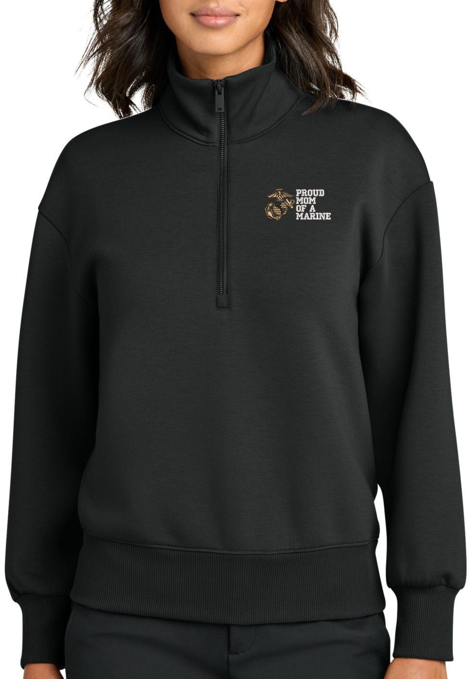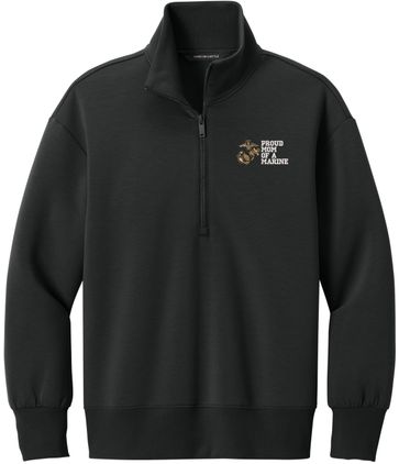 MilitaryBest is proud to offer this Proud Mom of a Marine U.S. Marine Corps Women's Soft Spacer Quarter-Zip. This quarter-zip is embroidered by our MilitaryBest team in Northeast Alabama. These quarter-zips are made using spacer yarn to provide light insulation with a soft structure, they also fight odor and provide light UV ray protection.Care Instructions: Turn Garment Inside Out. Machine Wash Cold With Like Colors. Only Non-Chlorine Bleach, When Needed. Tumble Dry Low, Remove Promptly. Cool Iron, If Necessary. Do Not Use Fabric Softeners Or Dryer Sheets.