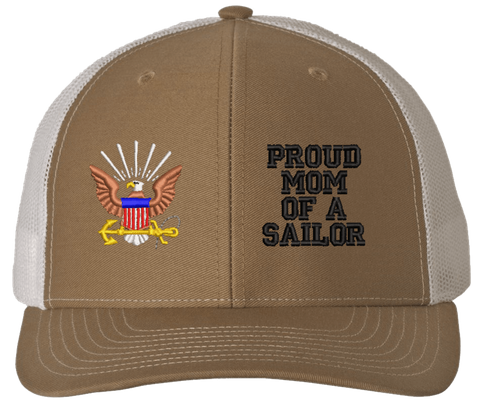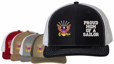 MilitaryBest is proud to offer this Proud Mom of a Sailor U.S. Navy Mesh Back Cap. The design of this U.S. Navy Cap is crisp, clean, and sure to be loved by people of all ages! Select above from our many cap colors. This Proud Mom of a Sailor U.S. Navy Mesh Back Cap is crafted by our skilled embroidery technicians at our facilities in Scottsboro, AL. As with all MilitaryBest items, your satisfaction is guaranteed!Caps ordered with custom embroidered personalized back text require an additional 2 to 3 days production time. All custom back text will be embroidered in ALL CAPITAL LETTERS. Caps personalized with back text are non-returnable unless there is a material defect in the cap.