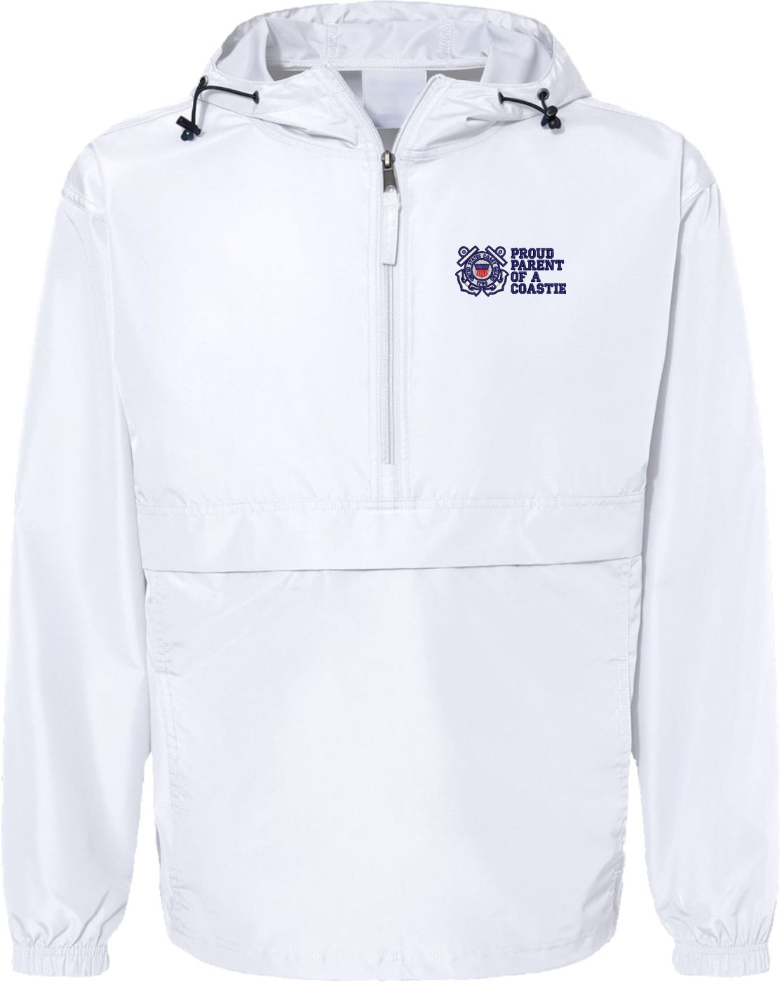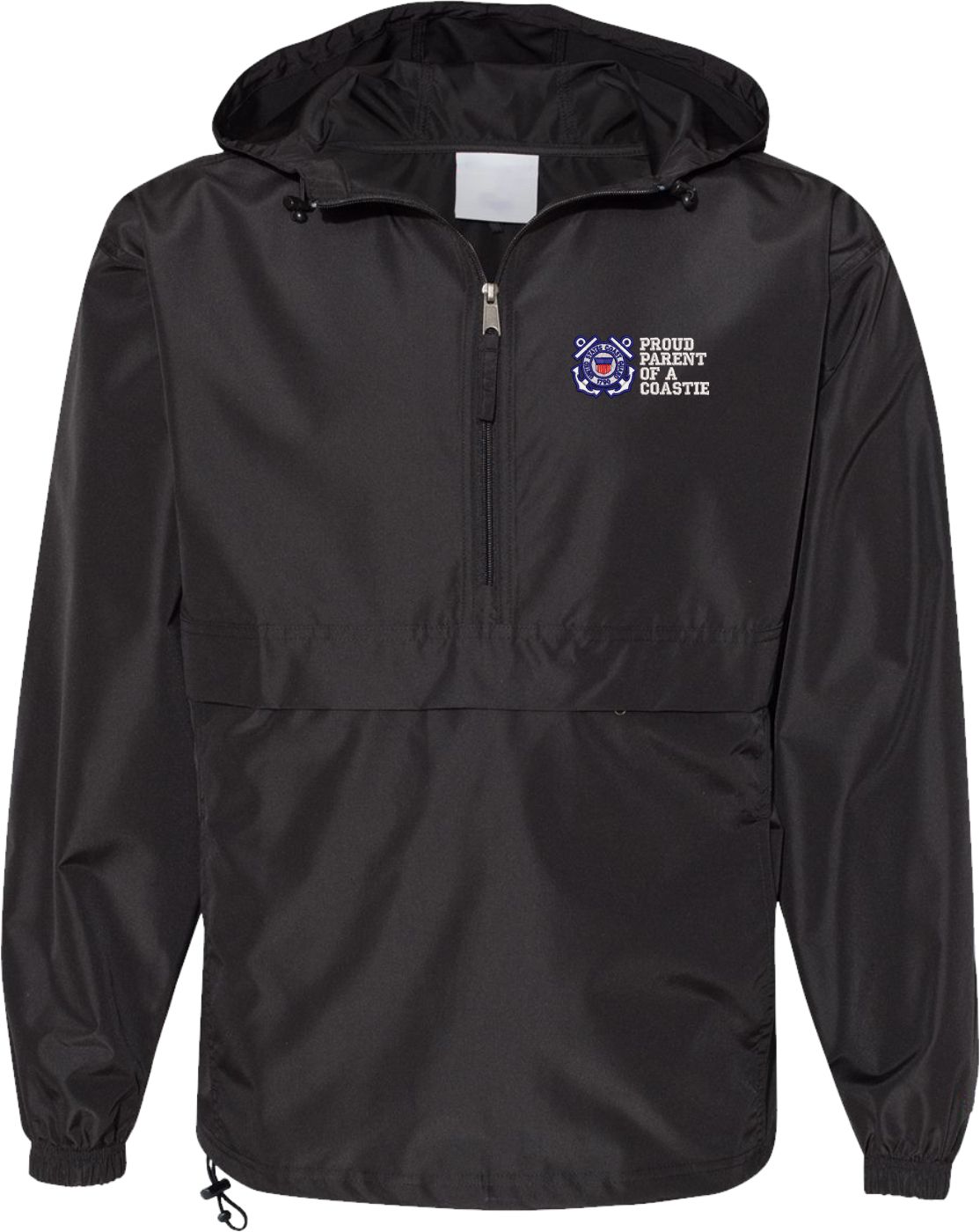 MilitaryBest is proud to offer this quality Proud Parent of a Coastie U.S. Coast Guard Hooded Windbreaker. Also known as an Anorak Jacket, this windbreaker is designed to keep wind and water out. With a design embroidered over the left chest, this windbreaker is embroidered to order at our facilities in Scottsboro, AL.. This windbreaker can be packed into the mesh lined pouch pocket for a more portable method of storage.- 100% Polyester