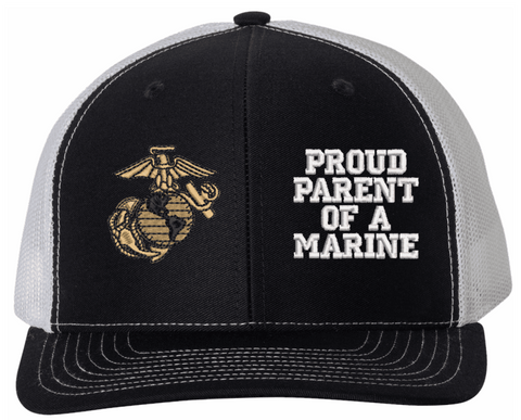 MilitaryBest is proud to offer this Proud Parent of a Marine U.S. Marine Corps Made in the USA Cap. The design of this U.S. Marine Corps Cap is crisp, clean, and sure to be loved by people of all ages! Select above from our many cap colors. This Proud Parent of a Marine U.S. Marine Corps Made in the USA Cap is crafted by our skilled embroidery technicians at our facilities in Scottsboro, AL. As with all MilitaryBest items, your satisfaction is guaranteed!Caps ordered with custom embroidered personalized back text require an additional 2 to 3 days production time. All custom back text will be embroidered in ALL CAPITAL LETTERS. Caps personalized with back text are non-returnable unless there is a material defect in the cap.