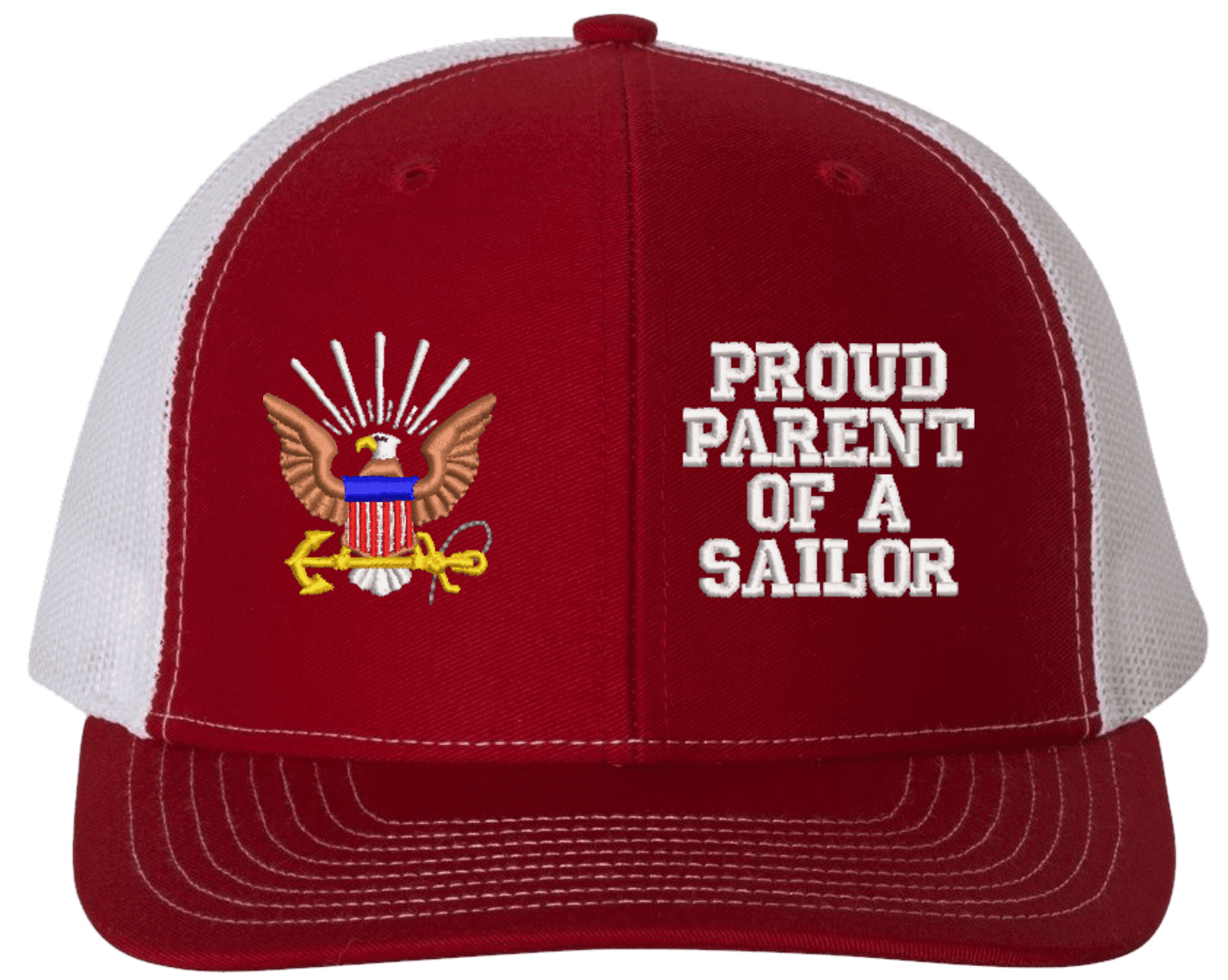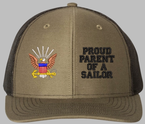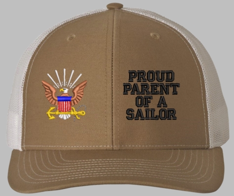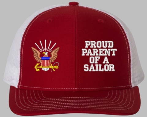 MilitaryBest is proud to offer this Proud Parent of a Sailor U.S. Navy Mesh Back Cap. The design of this U.S. Navy Cap is crisp, clean, and sure to be loved by people of all ages! Select above from our many cap colors. This Proud Parent of a Sailor U.S. Navy Mesh Back Cap is crafted by our skilled embroidery technicians at our facilities in Scottsboro, AL. As with all MilitaryBest items, your satisfaction is guaranteed!Caps ordered with custom embroidered personalized back text require an additional 2 to 3 days production time. All custom back text will be embroidered in ALL CAPITAL LETTERS. Caps personalized with back text are non-returnable unless there is a material defect in the cap.