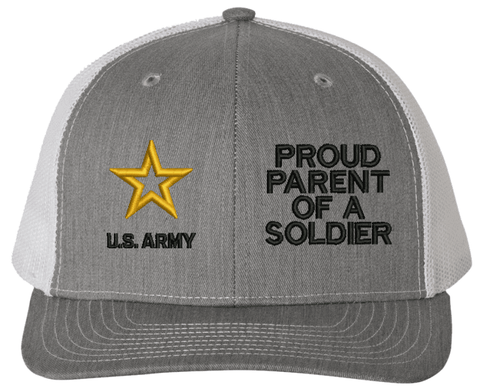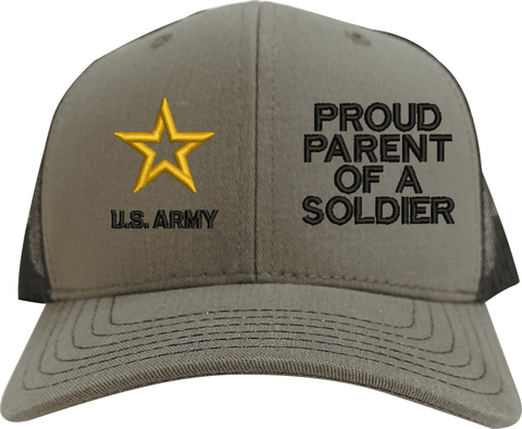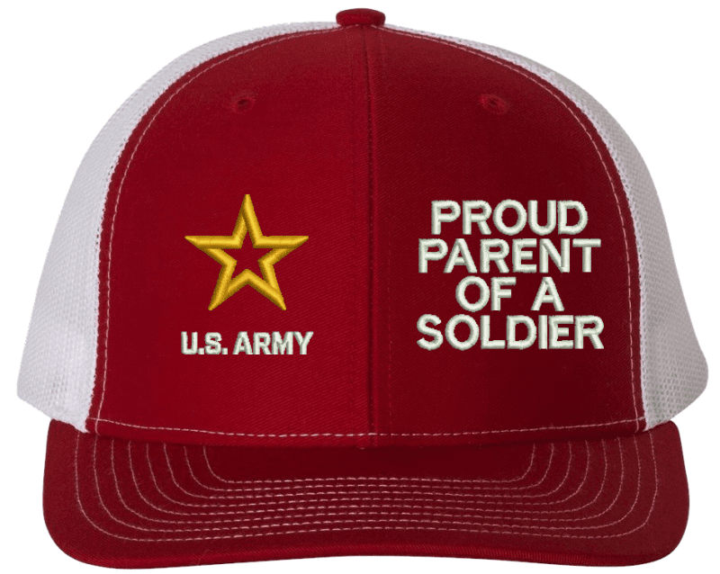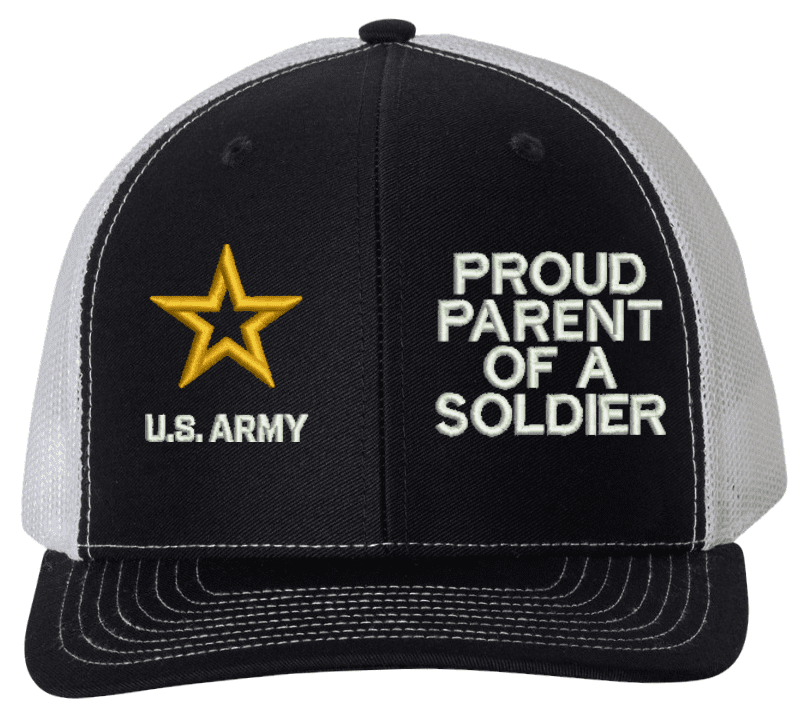 MilitaryBest is proud to offer this Proud Parent of a Soldier U.S. Army Mesh Back Cap. The design of this U.S. Army Cap is crisp, clean, and sure to be loved by people of all ages! Select above from our many cap colors. This Proud Parent of a Soldier U.S. Army Mesh Back Cap is crafted by our skilled embroidery technicians at our facilities in Scottsboro, AL. As with all MilitaryBest items, your satisfaction is guaranteed!Caps ordered with custom embroidered personalized back text require an additional 2 to 3 days production time. All custom back text will be embroidered in ALL CAPITAL LETTERS. Caps personalized with back text are non-returnable unless there is a material defect in the cap.