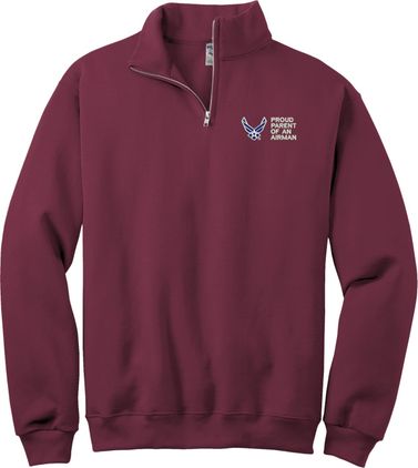MilitaryBest is proud to offer this Proud Parent of an Airman U.S. Air Force Embroidered Quarter-Zip Pullover. This quality shirt is embroidered by our MilitaryBest team in Northeast Alabama.PRODUCT FEATURES