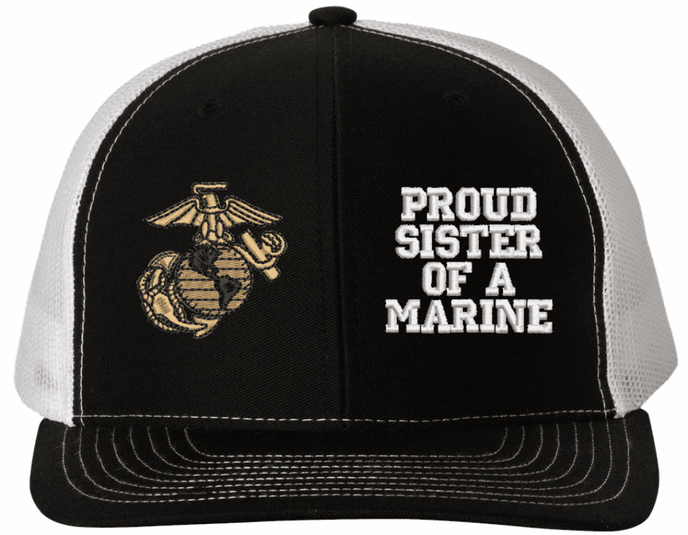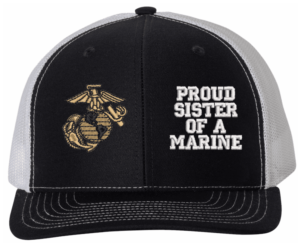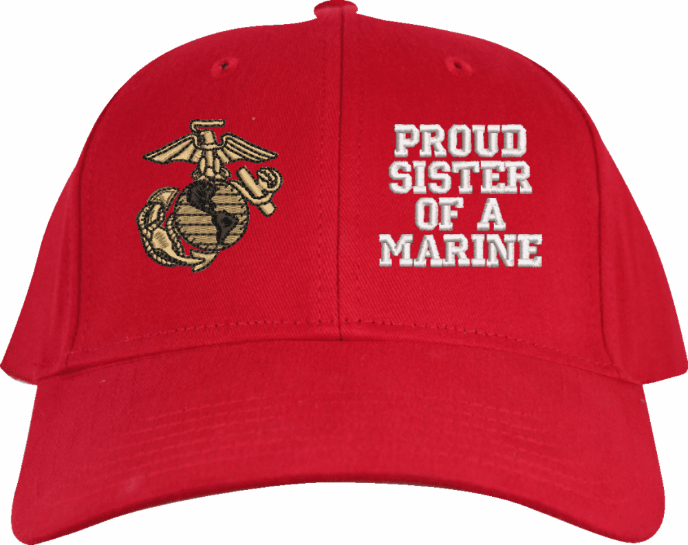 MilitaryBest is proud to offer this Proud Sister of a Marine U.S. Marine Corps Made in the USA Cap. The design of this U.S. Marine Corps Cap is crisp, clean, and sure to be loved by people of all ages! Select above from our many cap colors. This Proud Sister of a Marine U.S. Marine Corps Made in the USA Cap is crafted by our skilled embroidery technicians at our facilities in Scottsboro, AL. As with all MilitaryBest items, your satisfaction is guaranteed!Caps ordered with custom embroidered personalized back text require an additional 2 to 3 days production time. All custom back text will be embroidered in ALL CAPITAL LETTERS. Caps personalized with back text are non-returnable unless there is a material defect in the cap.