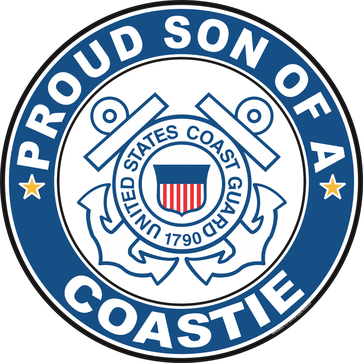 MilitaryBest is proud to offer this Proud Son of a Coastie U.S. Coast Guard Round Decal. This U.S. Coast Guard Decal is a great way to show your family pride. All MilitaryBest Coast Guard stickers are printed using high-quality vinyl and U.V. resistant ink. Each is then cured, laminated and die cut for a beautiful crisp, clean and professional look. This Proud Son of a Coastie U.S. Coast Guard Round Decal, as well as, any other MilitaryBest.com decal is proudly Made in the USA at our facilities in Scottsboro, AL. Select desired quantity and size from the menu above.Features: