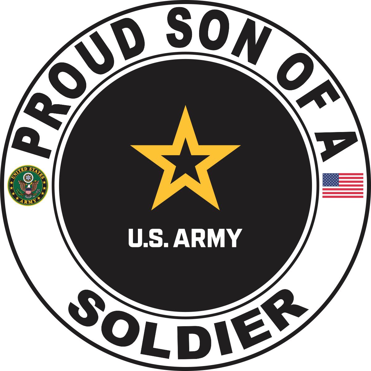 MilitaryBest is proud to offer this Proud Son of a Soldier U.S. Army Round Decal. This U.S. Army Decal is a great way to show your family pride. All MilitaryBest Army stickers are printed using high-quality vinyl and U.V. resistant ink. Each is then cured, laminated and die cut for a beautiful crisp, clean and professional look. This Proud Son of a Soldier U.S. Army Round Decal, as well as, any other MilitaryBest.com decal is proudly Made in the USA at our facilities in Scottsboro, AL. Select desired quantity and size from the menu above.Features: