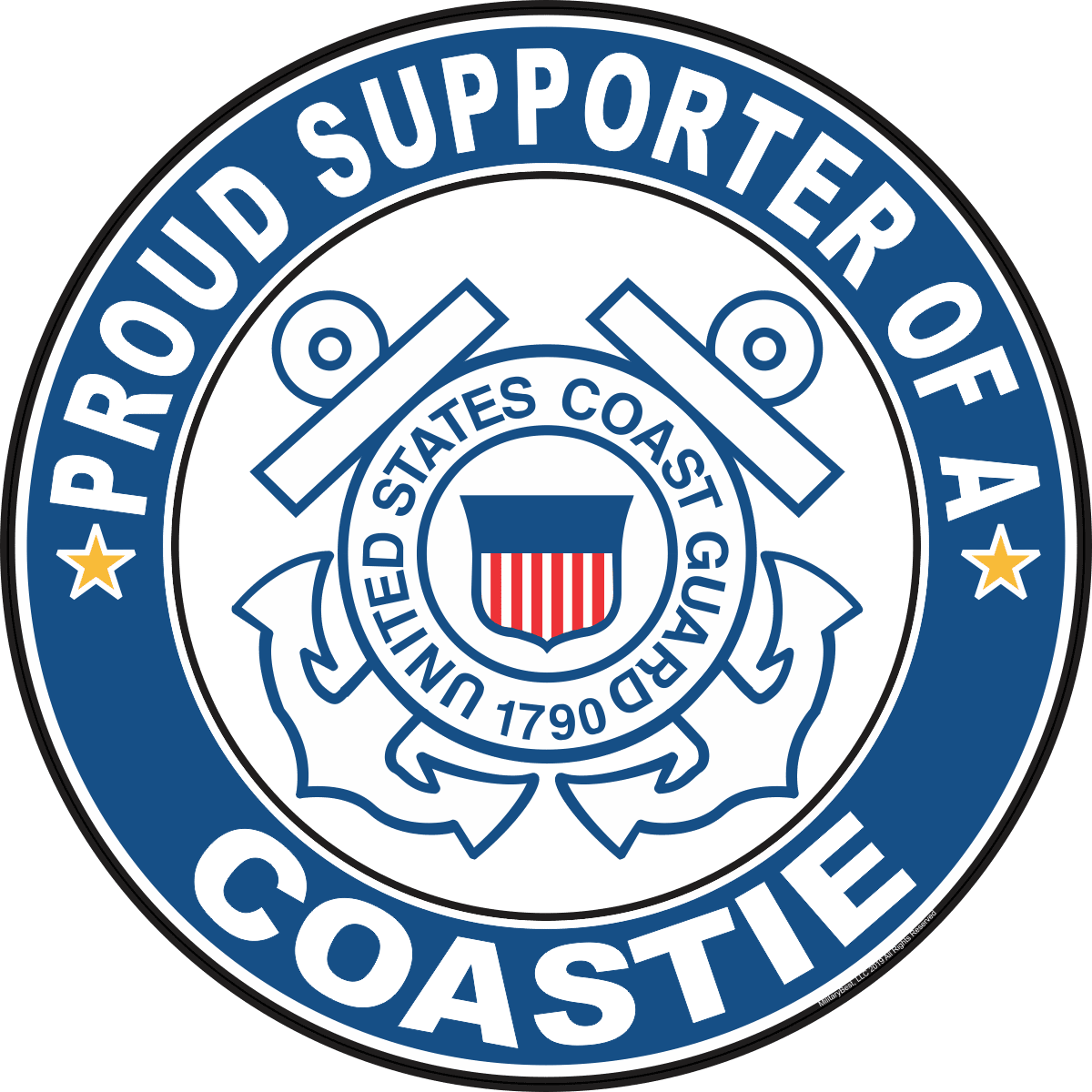 MilitaryBest is proud to offer this Proud Supporter of a Coastie U.S. Coast Guard Round Decal. This U.S. Coast Guard Decal is a great way to show your family pride. All MilitaryBest Coast Guard stickers are printed using high-quality vinyl and U.V. resistant ink. Each is then cured, laminated and die cut for a beautiful crisp, clean and professional look. This Proud Supporter of a Coastie U.S. Coast Guard Round Decal, as well as, any other MilitaryBest.com decal is proudly Made in the USA at our facilities in Scottsboro, AL. Select desired quantity and size from the menu above.Features: