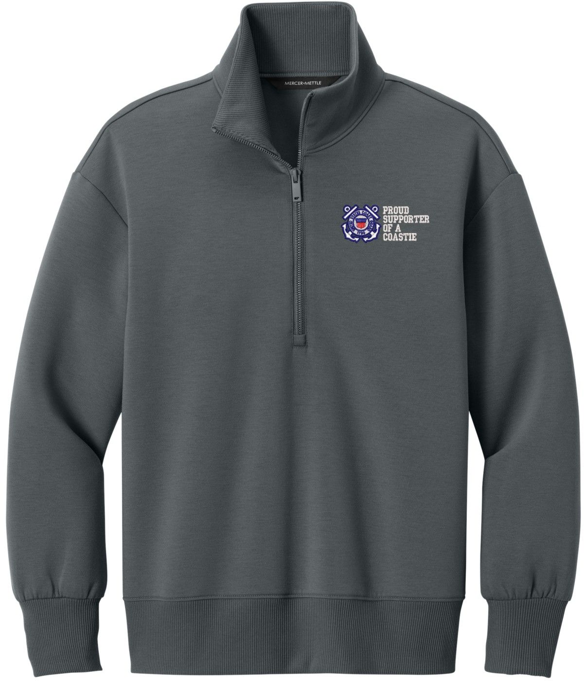 MilitaryBest is proud to offer this Proud Supporter of a Coastie U.S. Coast Guard Women's Soft Spacer Quarter-Zip. This quarter-zip is embroidered by our MilitaryBest team in Northeast Alabama. These quarter-zips are made using spacer yarn to provide light insulation with a soft structure, they also fight odor and provide light UV ray protection.Care Instructions: Turn Garment Inside Out. Machine Wash Cold With Like Colors. Only Non-Chlorine Bleach, When Needed. Tumble Dry Low, Remove Promptly. Cool Iron, If Necessary. Do Not Use Fabric Softeners Or Dryer Sheets.
