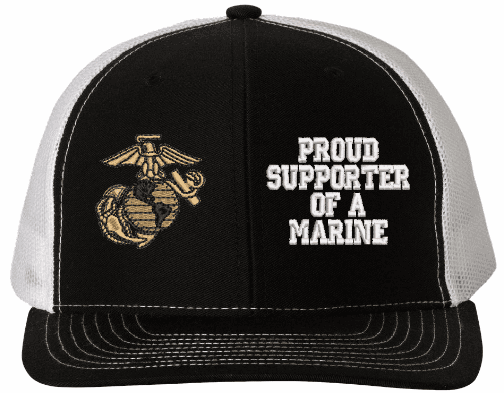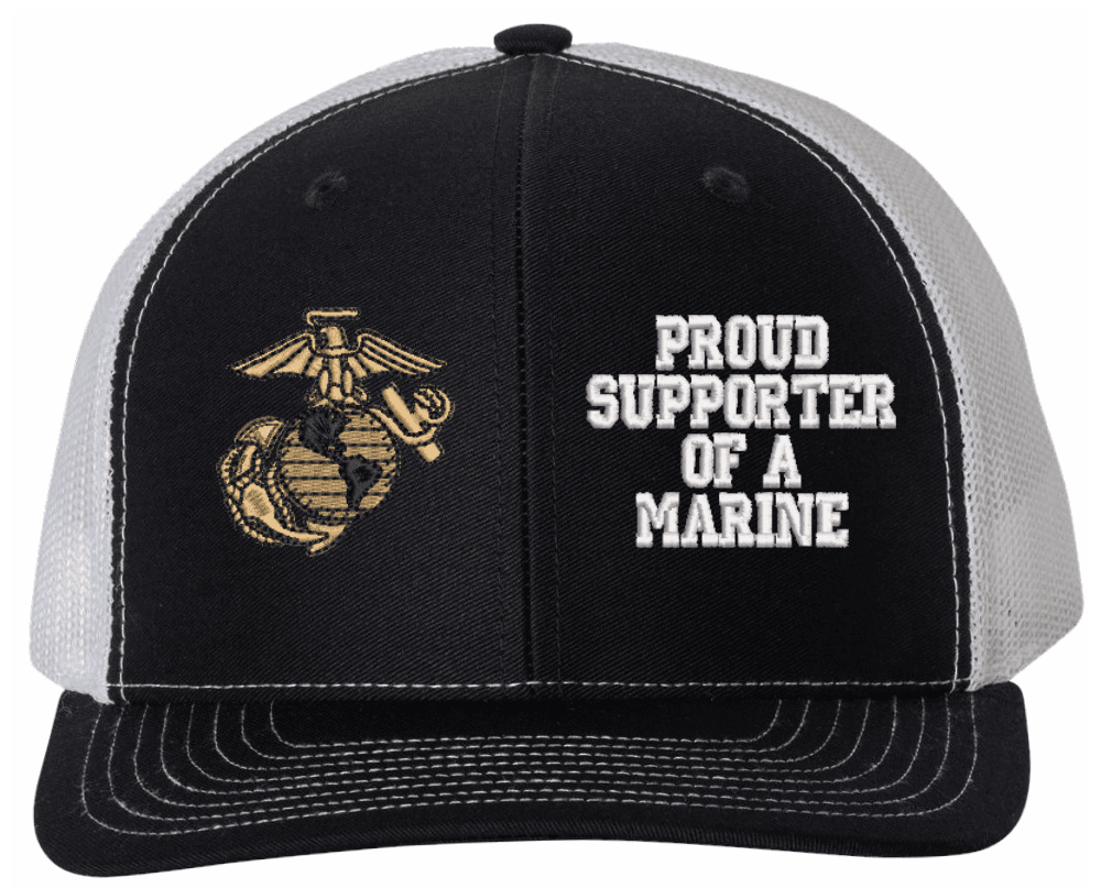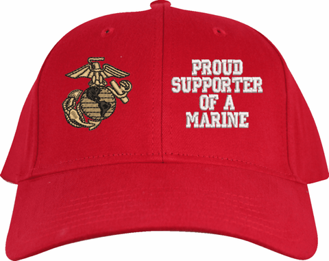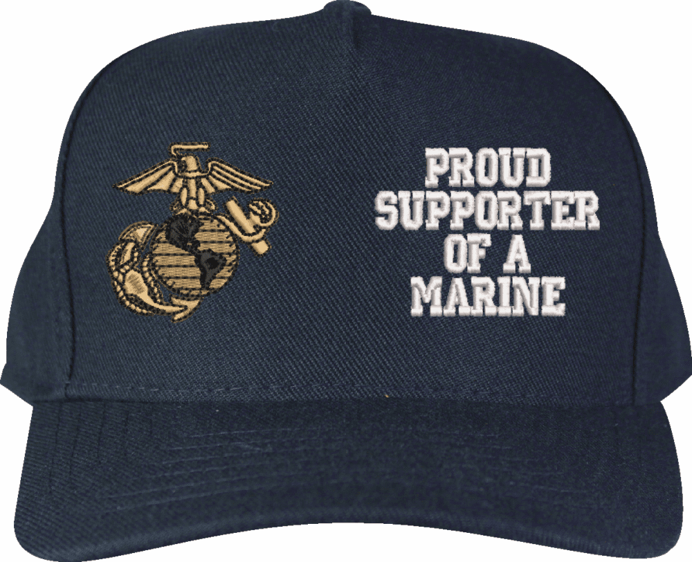 MilitaryBest is proud to offer this Proud Supporter of a Marine U.S. Marine Corps Made in the USA Cap. The design of this U.S. Marine Corps Cap is crisp, clean, and sure to be loved by people of all ages! Select above from our many cap colors. This Proud Supporter of a Marine U.S. Marine Corps Made in the USA Cap is crafted by our skilled embroidery technicians at our facilities in Scottsboro, AL. As with all MilitaryBest items, your satisfaction is guaranteed!Caps ordered with custom embroidered personalized back text require an additional 2 to 3 days production time. All custom back text will be embroidered in ALL CAPITAL LETTERS. Caps personalized with back text are non-returnable unless there is a material defect in the cap.