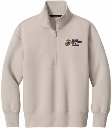 MilitaryBest is proud to offer this Proud Supporter of a Marine U.S. Marine Corps Women's Soft Spacer Quarter-Zip. This quarter-zip is embroidered by our MilitaryBest team in Northeast Alabama. These quarter-zips are made using spacer yarn to provide light insulation with a soft structure, they also fight odor and provide light UV ray protection.Care Instructions: Turn Garment Inside Out. Machine Wash Cold With Like Colors. Only Non-Chlorine Bleach, When Needed. Tumble Dry Low, Remove Promptly. Cool Iron, If Necessary. Do Not Use Fabric Softeners Or Dryer Sheets.