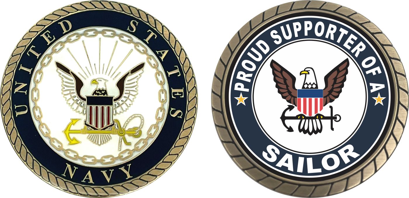 This 1 3/4” Proud Supporter of a Sailor U.S. Navy Challenge Coin is proudly offered by MilitaryBest. This Officially Licensed Navy coin has beautiful enamel finish on one side and an organized crisp clean Proud Supporter of a Sailor U.S. Navy design on the opposite side.