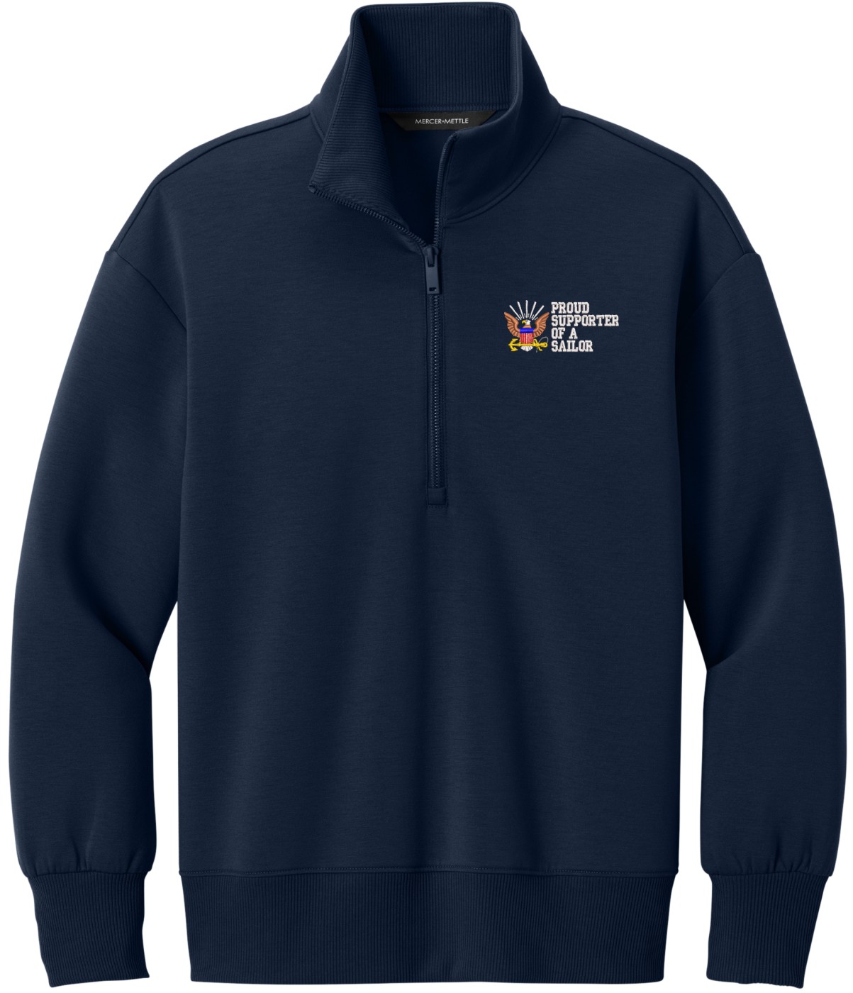 MilitaryBest is proud to offer this Proud Supporter of a Sailor U.S. Navy Women's Soft Spacer Quarter-Zip. This quarter-zip is embroidered by our MilitaryBest team in Northeast Alabama. These quarter-zips are made using spacer yarn to provide light insulation with a soft structure, they also fight odor and provide light UV ray protection.Care Instructions: Turn Garment Inside Out. Machine Wash Cold With Like Colors. Only Non-Chlorine Bleach, When Needed. Tumble Dry Low, Remove Promptly. Cool Iron, If Necessary. Do Not Use Fabric Softeners Or Dryer Sheets.