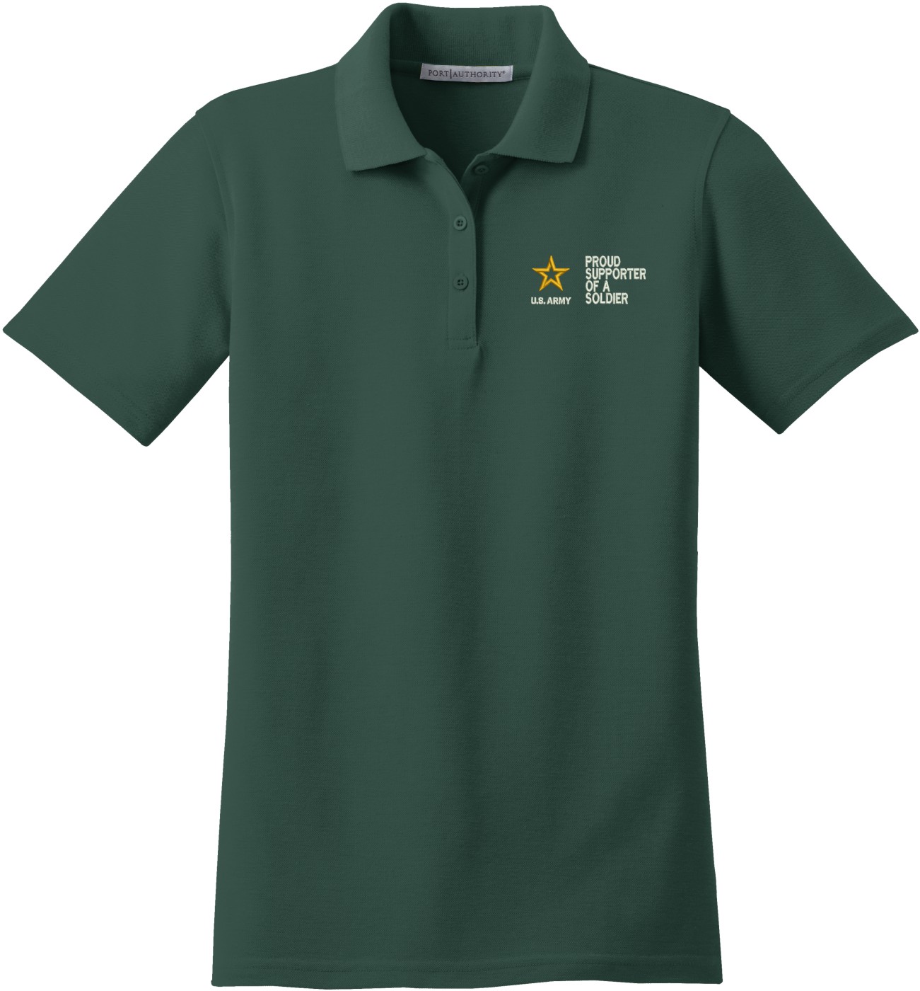 MilitaryBest is proud to offer this Proud Supporter of a Soldier U.S. Army Women's Stain-Release Polo. This polo is embroidered by our MilitaryBest team in Northeast Alabama. These polos are made with a stain-release finish for long-lasting wear, odor-fighting properties, and superior wrinkle and shrink resistance.Care Instructions: Machine Wash Cold With Like Colors. Do Not Use Fabric Softener. Do Not Bleach. Tumble Dry Low. Warm Iron If Necessary.