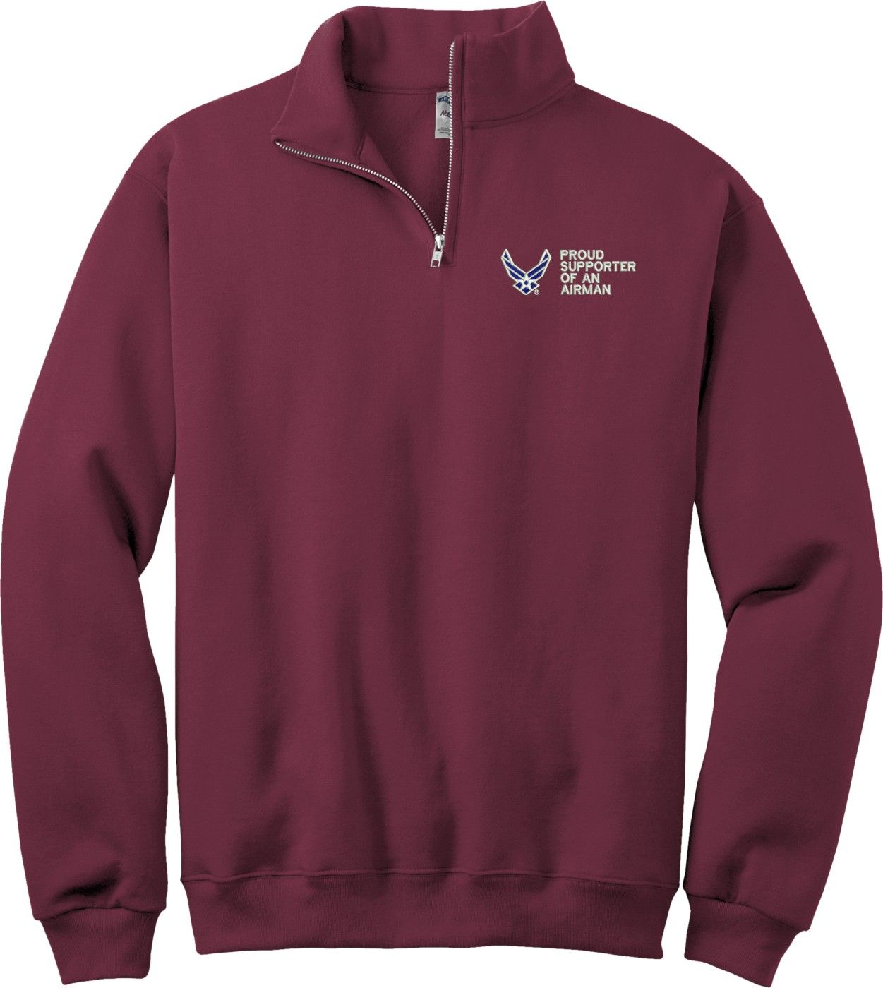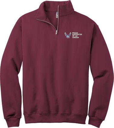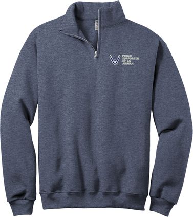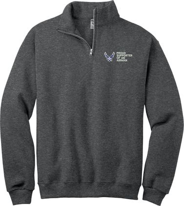 MilitaryBest is proud to offer this Proud Supporter of an Airman U.S. Air Force Embroidered Quarter-Zip Pullover. This quality shirt is embroidered by our MilitaryBest team in Northeast Alabama.PRODUCT FEATURES