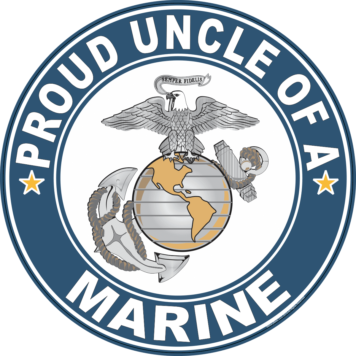 MilitaryBest is proud to offer this Proud Uncle of a Marine U.S. Marine Corps Round Decal. This U.S. Marine Corps Decal is a great way to show your family pride. All MilitaryBest Marine Corps stickers are printed using high-quality vinyl and U.V. resistant ink. Each is then cured, laminated and die cut for a beautiful crisp, clean and professional look. This Proud Uncle of a Marine U.S. Marine Corps Round Decal, as well as, any other MilitaryBest.com decal is proudly Made in the USA at our facilities in Scottsboro, AL. Select desired quantity and size from the menu above.Features: