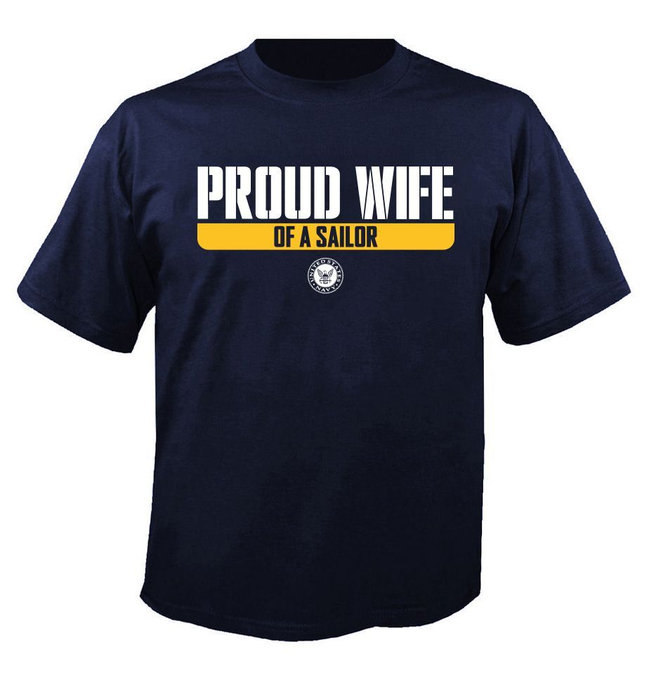 Please enjoy this US Navy officially licensed Proud Wife of A Sailor T-Shirt. It is a 100% cotton shirt and is available in S, M, L, XL, 2X, 3X and 4X sizes.A percentage of the sale of each MilitaryBest item is forwarded to the licensing departments of each respective branch of service in support of the MWR (Morale, Welfare, & Recreation) program. These payments are made by either ALL4U LLC or the wholesaler from where the item originated. Our team thanks you for your service and your support of these programs.