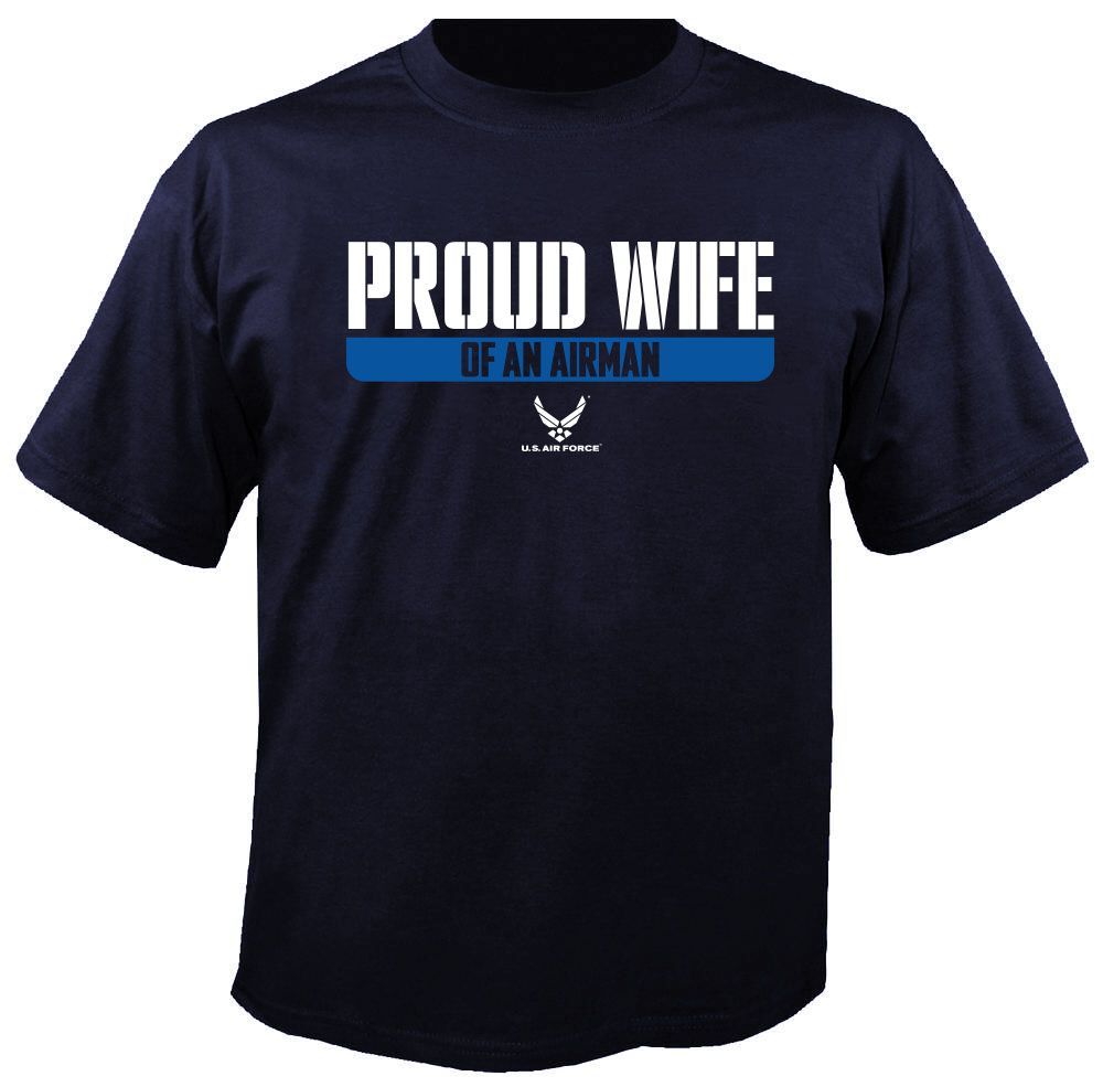 Please enjoy this U.S. Air Force officially licensed Proud Wife of An Airman T-Shirt. It is a 100% cotton shirt and is available in S, M, L, XL, 2X, 3X and 4X sizes.A percentage of the sale of each MilitaryBest item is forwarded to the licensing departments of each respective branch of service in support of the MWR (Morale, Welfare, & Recreation) program. These payments are made by either ALL4U LLC or the wholesaler from where the item originated. Our team thanks you for your service and your support of these programs.