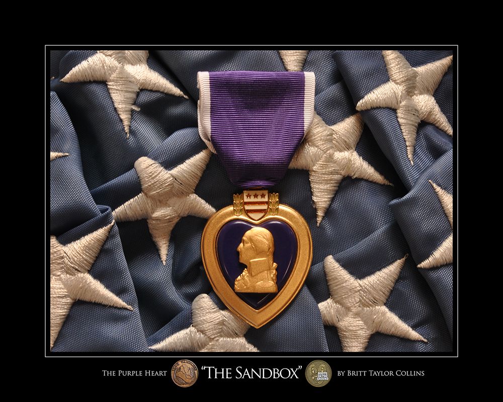 TO FULLY APPRECIATE THE DETAIL IN THIS PIECE, PLEASE CLICK ON THE IMAGE ABOVE TO ENLARGE.We are extremely proud and honored to have partnered with Britt Taylor Collins, “The Veterans’ Artist”, to offer an extensive line of Military Art, particularly these incredible Giclee LenzPrints. This "The Sandbox" Purple Heart for Afghanistan War fine Military Art Piece is printed with Archival Fade Resistant inks on high quality Museum Grade paper. Each U.S. Army art piece is printed one at a time and inspected by the artist, Britt Taylor Collins. After inspection, this piece is signed by Britt himself.