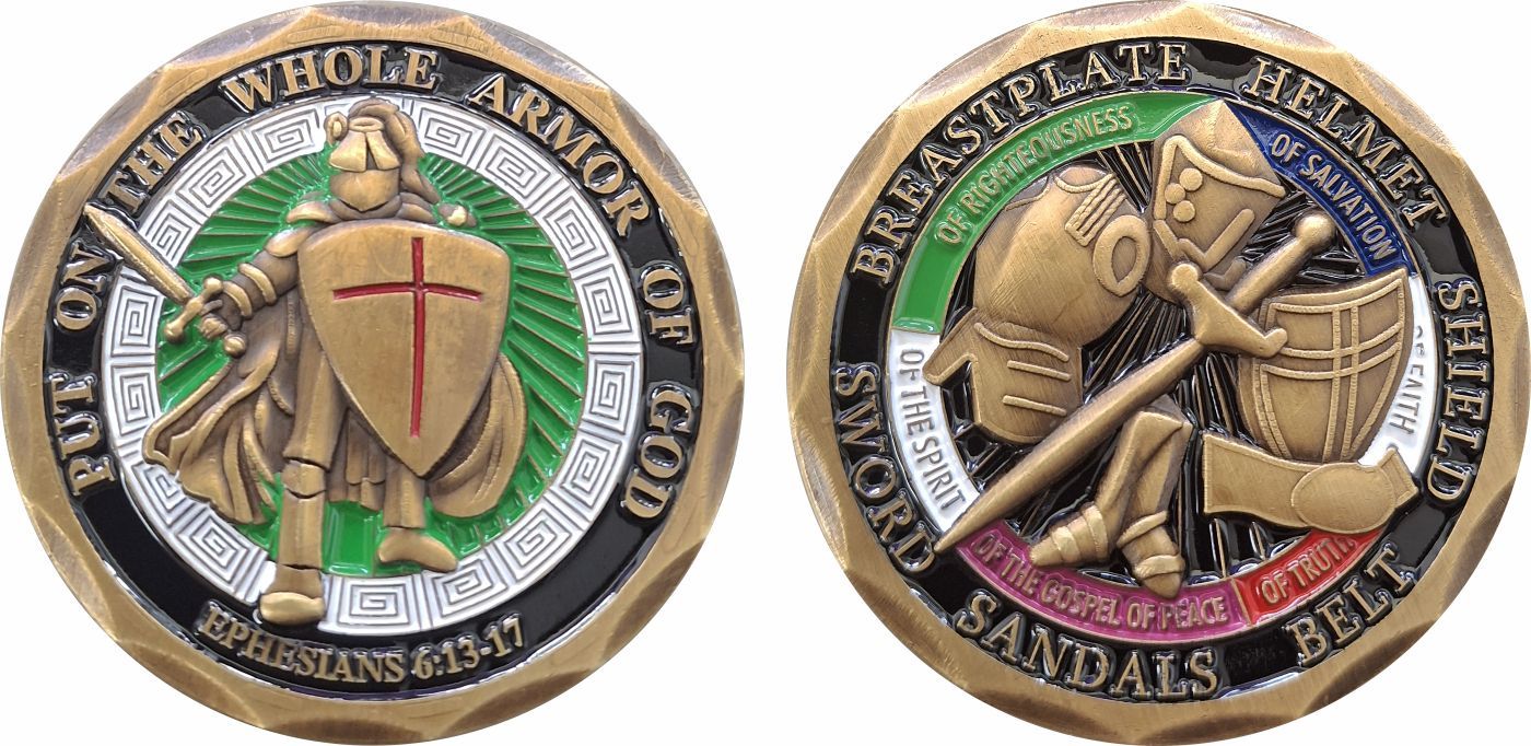 MilitaryBest.com is proud to introduce our line of Spiritual, Faith Based, Religious challenge coins. These coins are manufactured by the company that supplies the bases. All are coins are guaranteed. Derived from Ephisians 6:13-17.