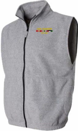 Due to supply chain disruptions, some colors and sizes may not be available in the same Brand, in these cases a brand of comparable quality will be used. Feel free to call in advance of your order, with questions you may have.MilitaryBest is proud to offer this quality USS Ranger CV-61 with Desert Storm Ribbons (Kuwait) Fleece Vest. This Fleece Vest features a convertible collar with dyed-to-match zipper pull, oversized nylon reinforced slash pockets, and an elastic hem. It is made using a 100% anti-pill polyester. This Fleece Vest will make an excellent addition to your wardrobe, or a quality gift. Your satisfaction is guaranteed! These Vests are custom embroidered at our facilities in Scottsboro, AL.