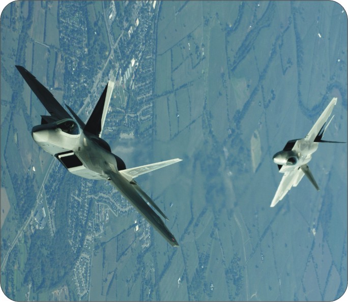 Each of our Operation Iraqi Freedom / Enduring Freedom Collection mouse pads are proudly made in the USA at our Jacksonville, Florida facilities with sharp, colorful graphics.This Raptor Row mouse pad showcases Lt. Col. James Hecker (front) and Lt. Col. Evan Dertein lining up their F/A-22 Raptor aircraft behind a KC-10 Extender to refuel while en route to Hill Air Force Base, Utah. Colonel Hecker commands the first operational Raptor squadron -- the 27th Fighter Squadron at Langley Air Force Base, Va. The unit went to Hill for operation Combat Hammer, the squadron's first deployment, Oct. 15. The deployment has a twofold goal: complete a deployment and generate a combat-effective sortie rate away from home.