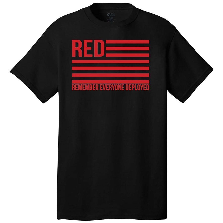 Support our troops by wearing RED on Fridays. These "Remember Everyone Deployed" red T-Shirts exemplify your support of our troops in a bold and patriotic way. All across the country patriotic people are wearing red on Fridays to show their support. Don't be left out. Order today!