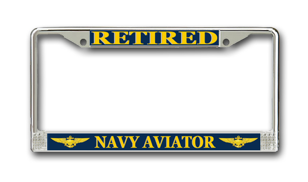 Retired Navy Aviator License Plate FrameThis Retired Navy Aviator License Plate Frame is made from the highest quality finished metal alloy. Each one is designed to provide years of use. Each is designed in our facility in Scottsboro, Alabama.